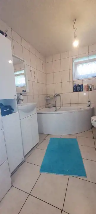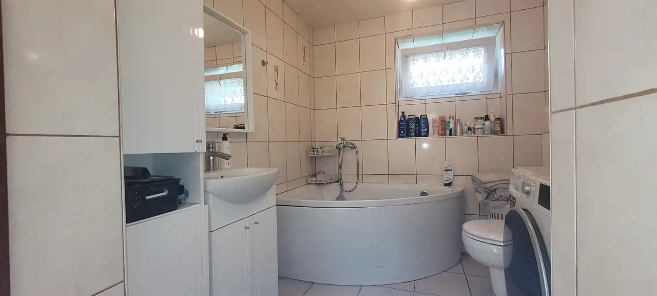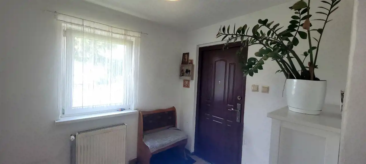 Na parterze duży, przestronny pokój dzienny z wyjściem na taras, kuchnia z oknem, łazienka z oknem, niewielki pokój, kotłownia (wejście z zewnątrz), na piętrze - 3 pokoje (w tym dwa duże kwadratowe z wyjściami na balkon), kuchnia ze spiżarką, łazienka (w budowie).