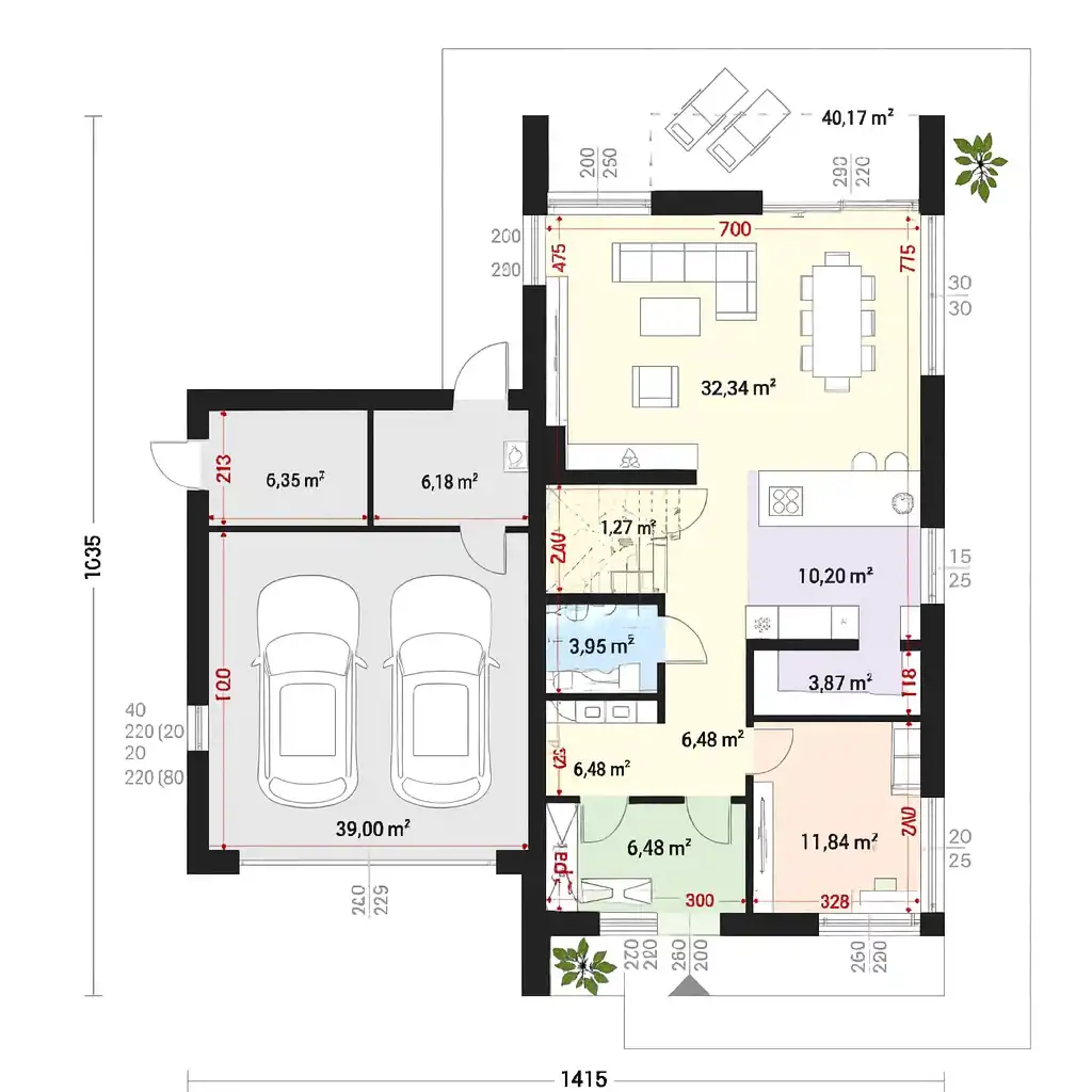 Garaż dwustanowiskowy w bryle domu (36 m²) – wygodny, funkcjonalny i przestronny.