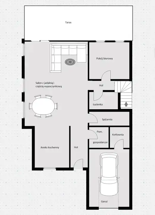 - Przestronne wnętrza, duży salon;