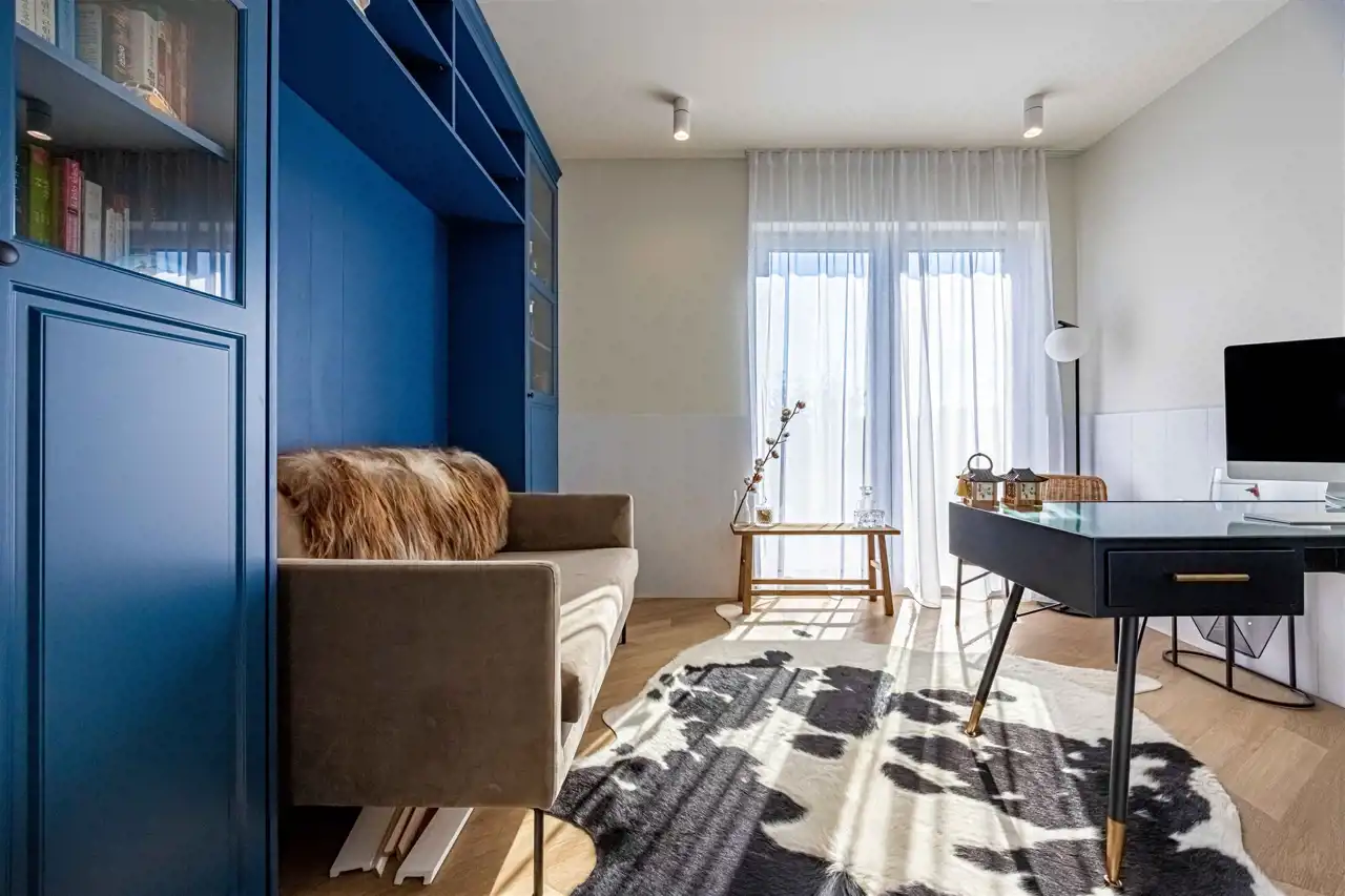- ogrzewanie podłogowe, elektrycznie sterowane żaluzje zewnętrzne;
