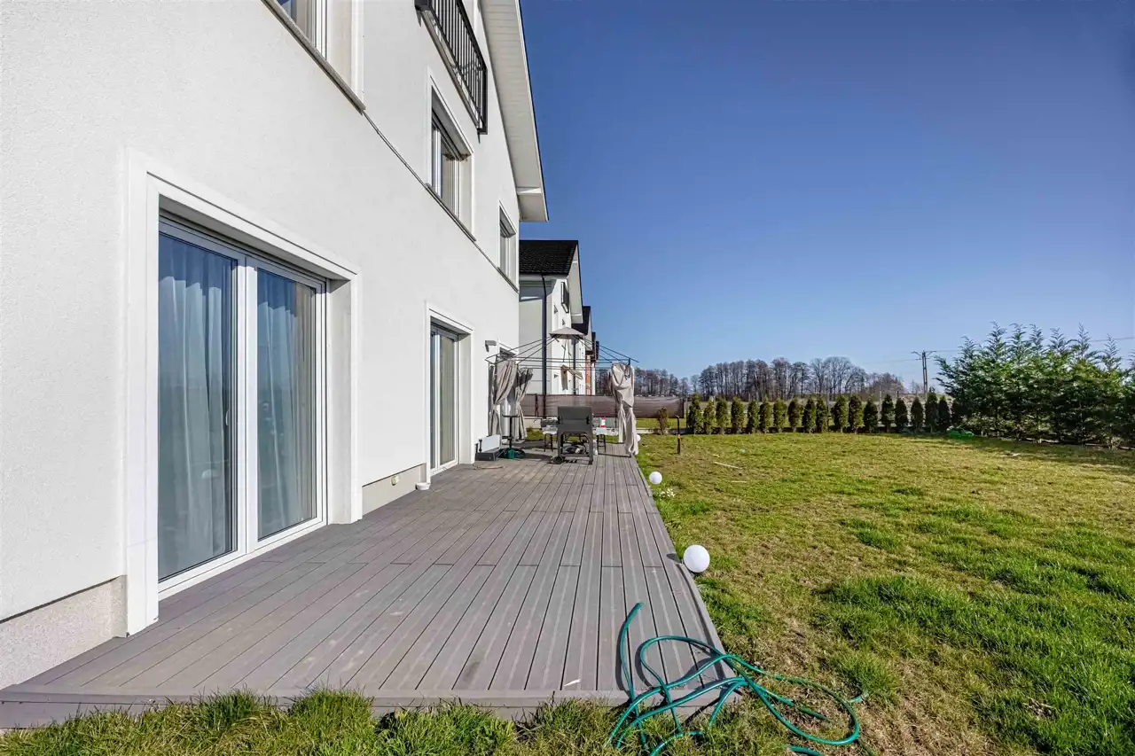 Duży ogród, taras oraz wyjątkowy widok z okien na otaczającą zieleń jest dodatkowym atutem.
