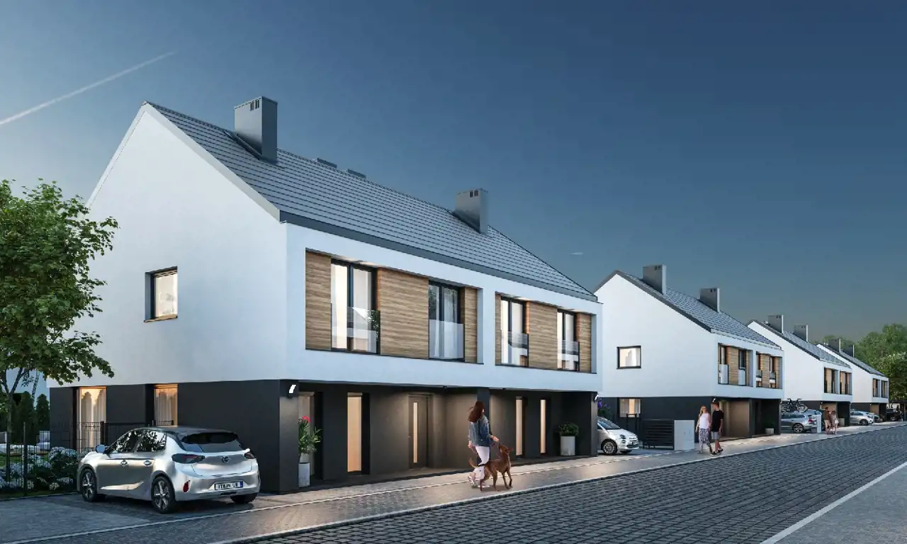 Osiedle wyróżnia się niską zabudową, szerokimi alejkami, wygodnymi podjazdami i wysokim standardem wykonania.