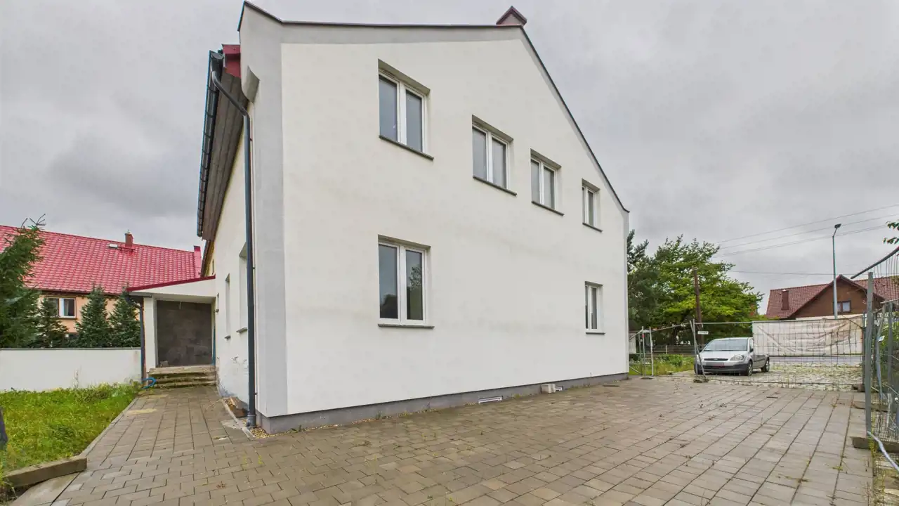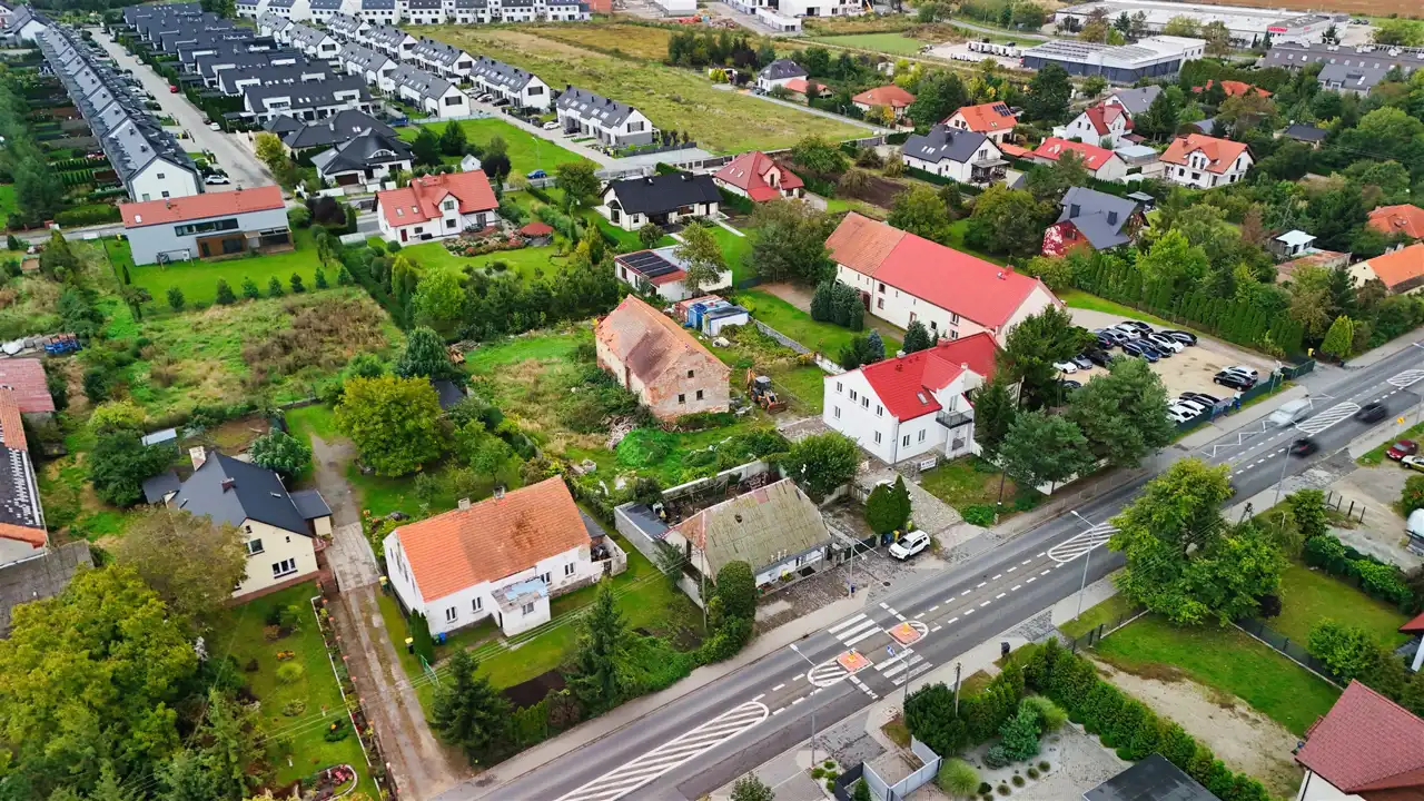 Na sprzedaż działka o powierzchni 2359 m², położona przy ul. Wrocławskiej w Domasławiu (gm. Kobierzyce). Nieruchomość obejmuje trzykondygnacyjny budynek mieszkalny w stanie deweloperskim o powierzchni użytkowej 171 m², podzielony na 2 niezależne mieszkania, oraz budynki magazynowo-gospodarcze o łącznej powierzchni 581 m², które mogą zostać zaadaptowane do funkcji mieszkalnej lub usługowej.