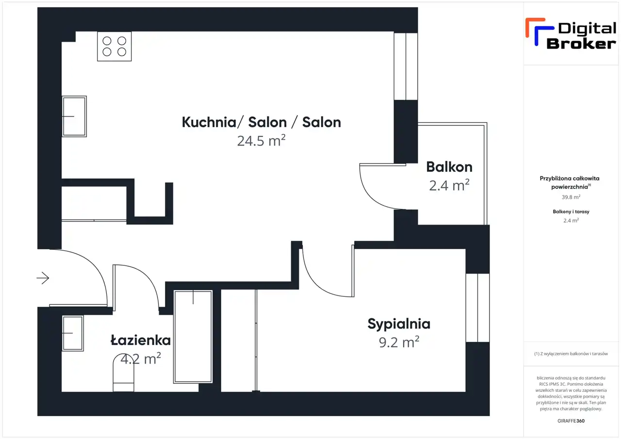 - Charakterystyka mieszkania 39.5 m2, 2 pokoje