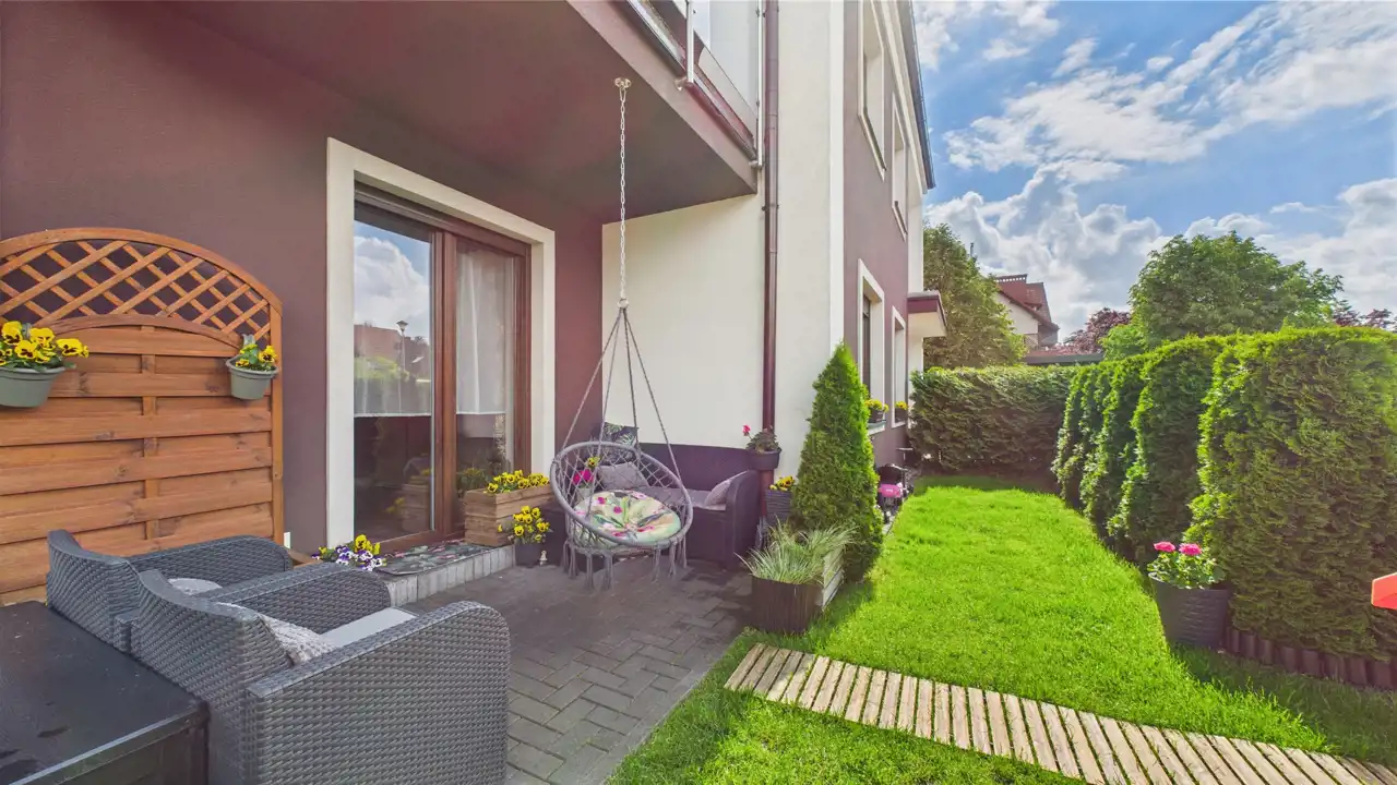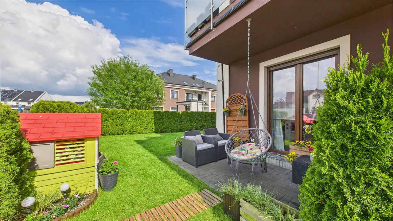 To mieszkanie łączy zalety domu z wygodą nowoczesnego apartamentu. Bezpośrednie wyjście z salonu na taras i prywatny ogród o powierzchni 125 m² to prawdziwa perełka tej oferty – trudno o drugie takie miejsce. Możesz tu spędzać poranki z kawą, organizować rodzinne grille czy stworzyć własną, zieloną strefę relaksu.