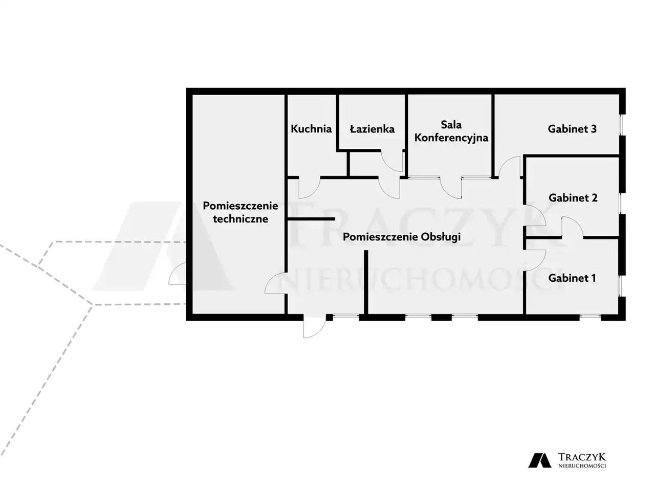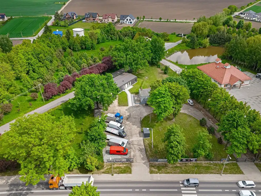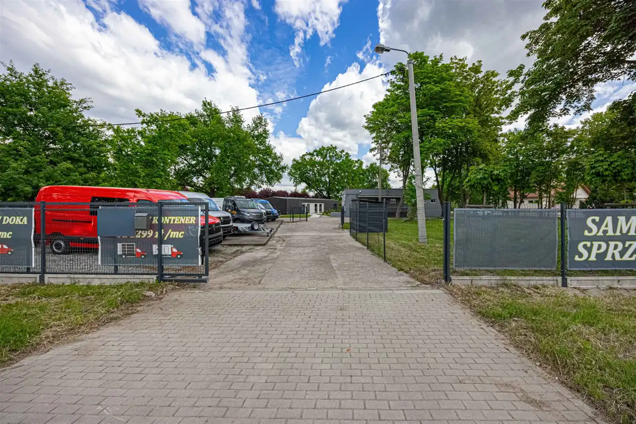 Działka gruntu o kształcie trapezu o powierzchni 3600 m2, w pełni ogrodzona, z dwoma bramami wjazdowymi zabudowana dwoma wolnostojącymi budynkami. Pierwszy z nich o powierzchni 125,5 m2 pełni obecnie funkcję biurowo-usługową, drugi budynek o powierzchni 100 m2 mógłby być wykorzystywany w przyszłości na ten sam lub inny cel (możliwość rozbudowy (np. dodatkowe piętro), budynek wymaga remontu).