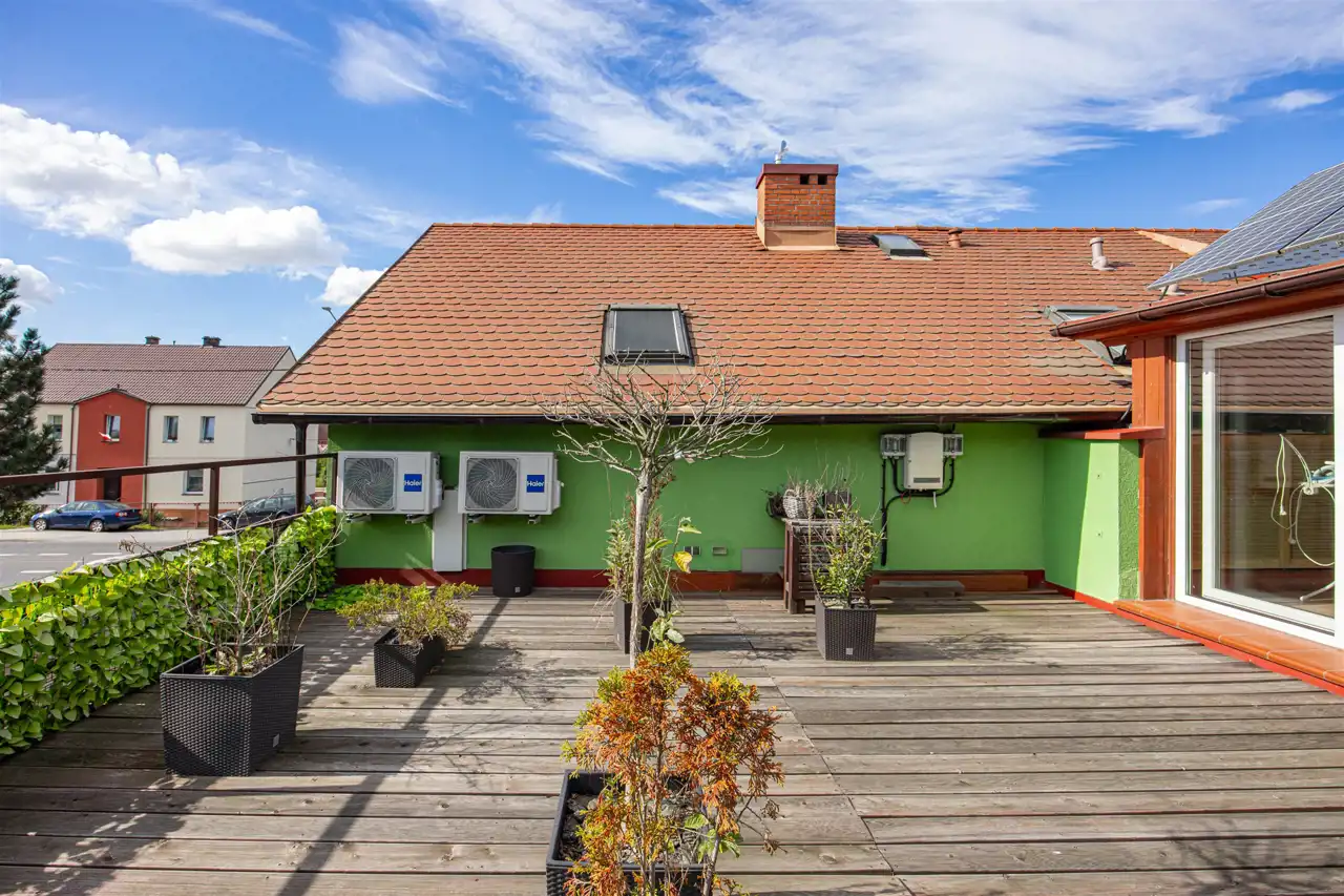 Fotowoltaika (zmniejszenie kosztów zużycia prądu), możliwość ładowania samochodu elektrycznego.