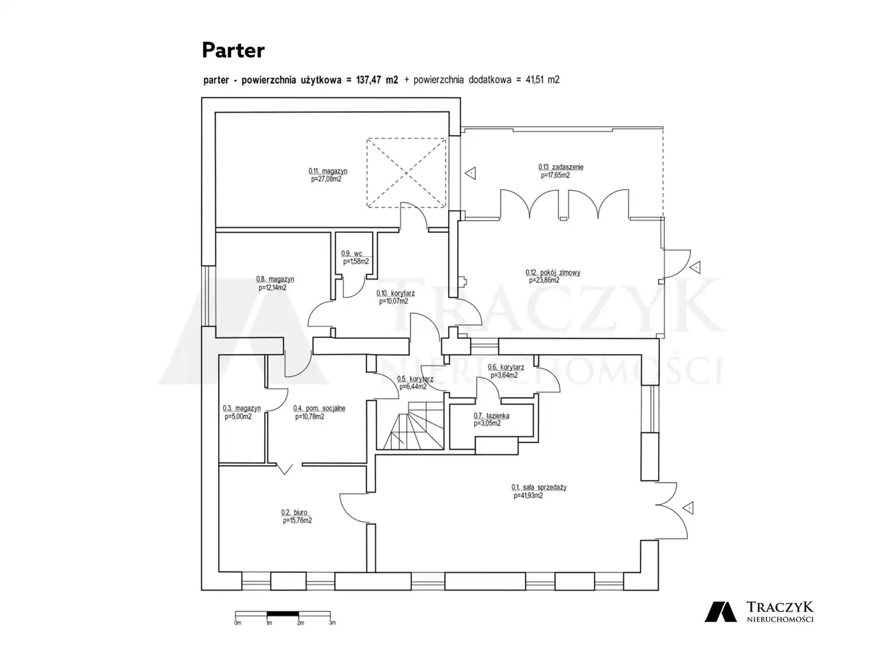 POZIOM 0 (137,47 m2) - przeznaczony do użytku komercyjnego — idealny na restaurację z barem i zapleczem sanitarno - kuchennym, sklep, punkt usługowy