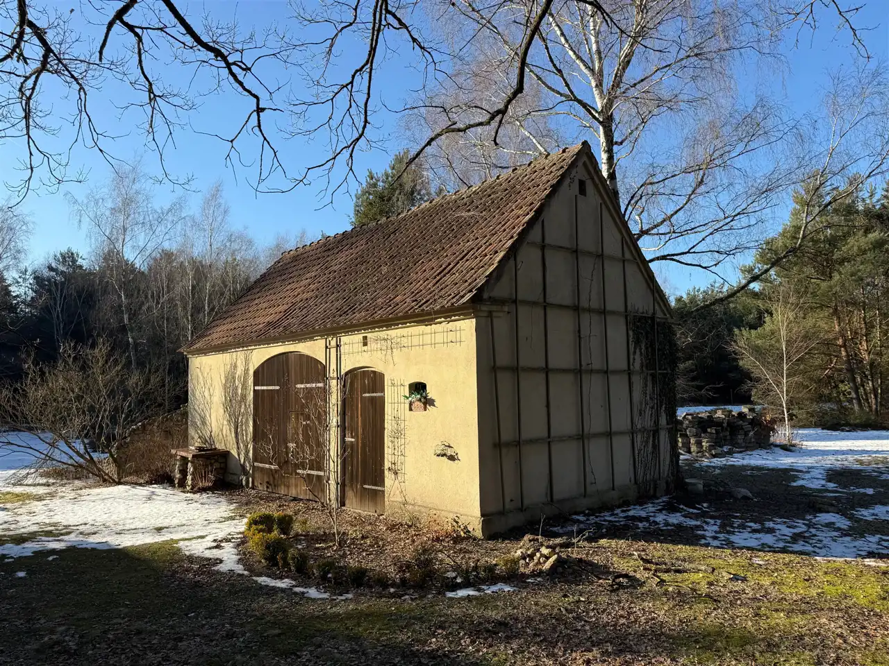 Na działce znajduje się także budynek gospodarczy z wydzielonym miejscem na drewno oraz częścią, którą można zaadaptować na garaż.