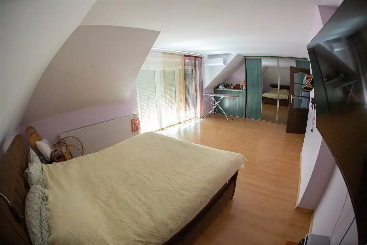 Na piętrze mamy 3 pokoje (w tym dwa z balkonami ) oraz łazienkę. Dodatkowo są tutaj schody na użytkowy strych, który stanowi świetne miejsce do przechowywania sezonowych rzeczy.
