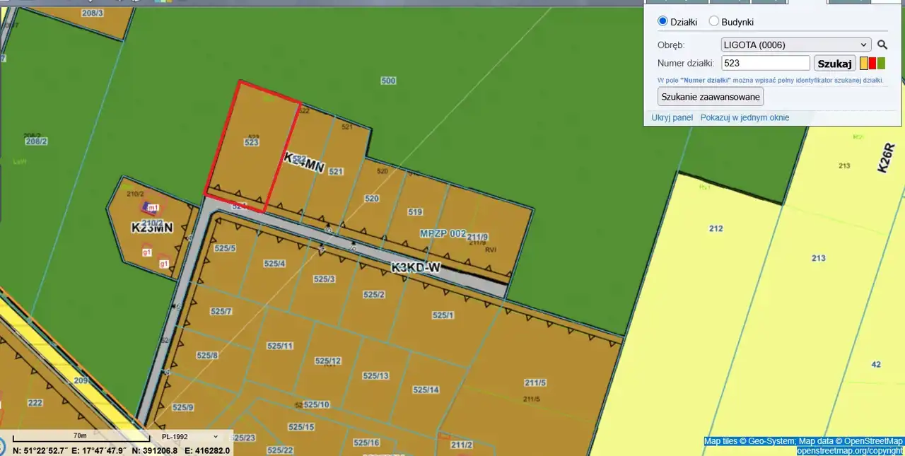 Parametry działki: