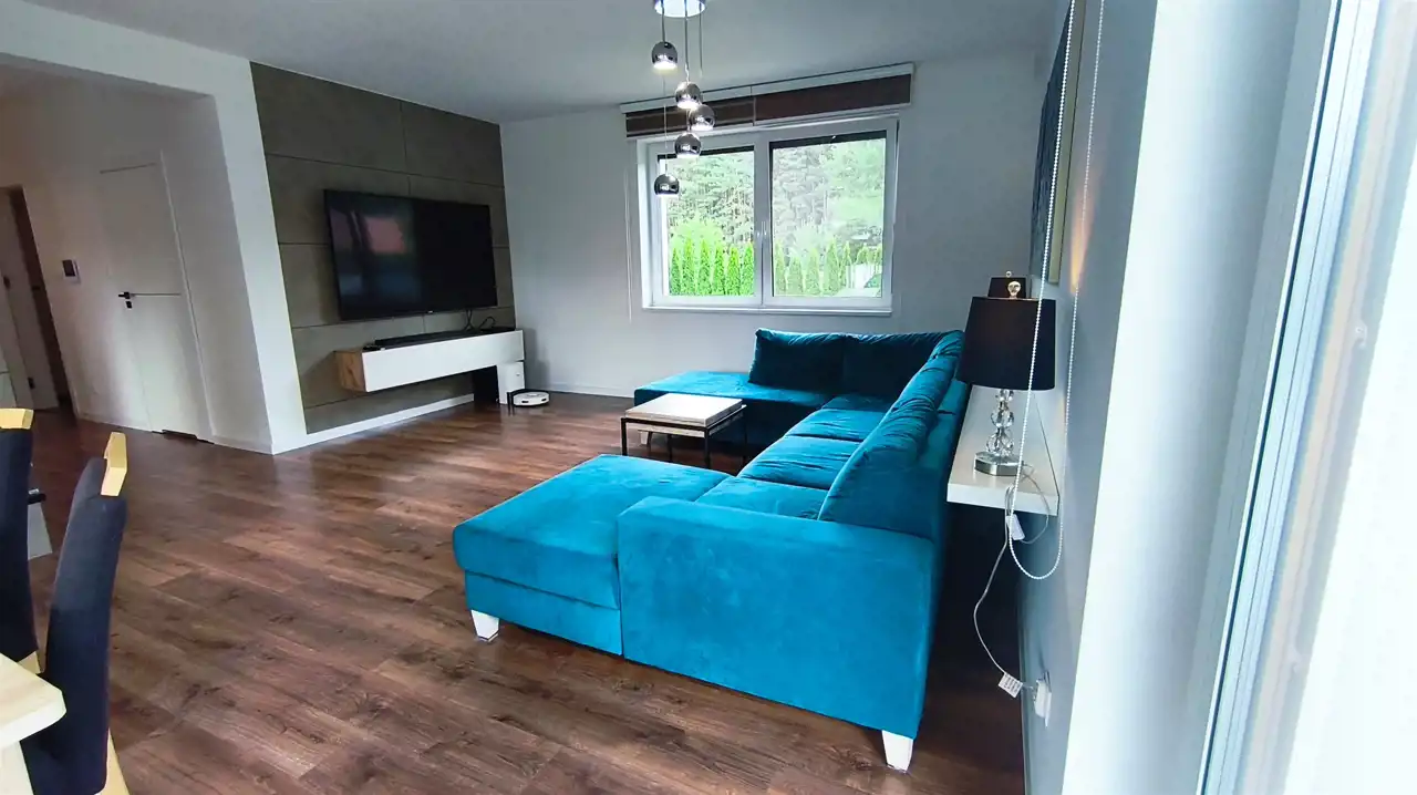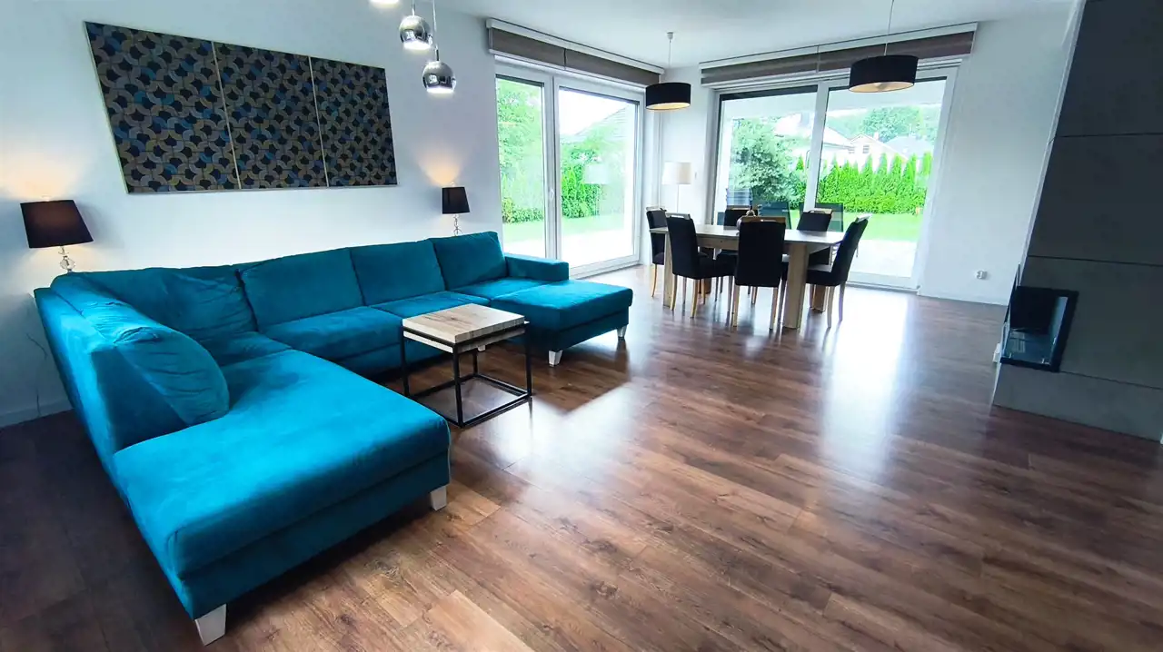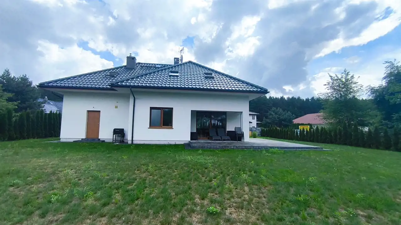 Na sprzedaż dom jednorodzinny o powierzchni użytkowej 173 m2. Dom parterowy z użytkowym poddaszem i bio kominkiem, w którego skład wchodzą parter: wiatrołap, hol, łazienka gościnna z prysznicem, salon oraz jadalnia z oknami panoramicznymi z wyjściem na taras, półotwarta kuchnia ze spiżarnią, oraz garaż jednostanowiskowym z pomieszczeniem technicznym. Piętro składa się z pralni, 3 bliźniaczych pokoi , sypialni głównej wraz z garderobą oraz łazienki głównej, która składa się z odkrytego prysznica, wanny wolnostojącej, WC, bidetu oraz szafki z dwiema umywalkami. Ogrzewanie gazowe, podłogowe z pieca dwuobiegowego. Kanalizacja oraz gaz miejskie . Dom wybudowany został w roku 2019. Nieruchomość stoi na działce o powierzchni 1124 m2 . Lokalizacja , w pobliżu nieruchomości znajdują się sklep, szkoła podstawowa, przedszkole.