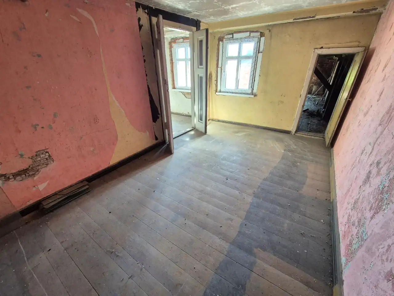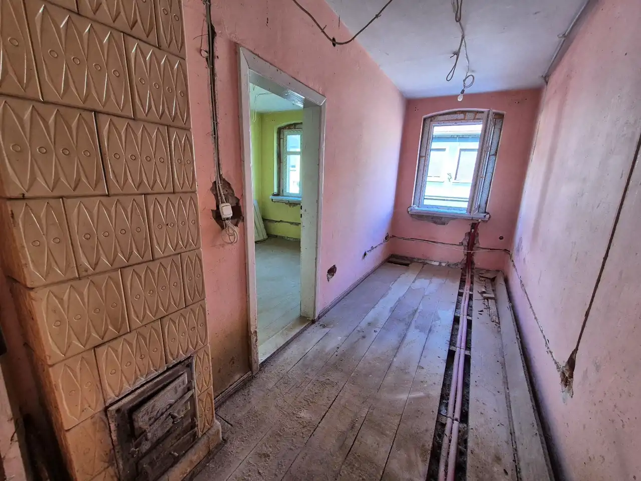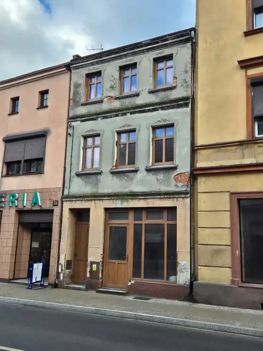 OPIS: kamienica w zabudowie zwartej, częściowo po przeprowadzonym remoncie. Materiał budowlany - cegła, dach pokryty papą. Stolarka okienna wymieniona w całym budynku na okna trzyszybowe dwukolorowe (wewnątrz białe, na zewnątrz w okleinie drewnianej. Nowa instalacje: elektryczna, centralnego ogrzewania oraz wodno - kanalizacyjna. Podłogi - deska drewniana.