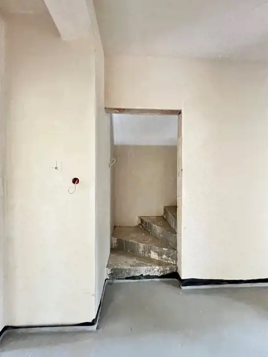 Dodatkową powierzchnię stanowi duży strych nieużytkowy, na którym można zrobić dodatkowe sypialnie, łazienkę. Na poddasze wylane betonowe schody. Poddasze po podłodze około 50 m2. Wstawione dwa okna, dach docieplony pianą pur (15 cm), wyprowadzone media.