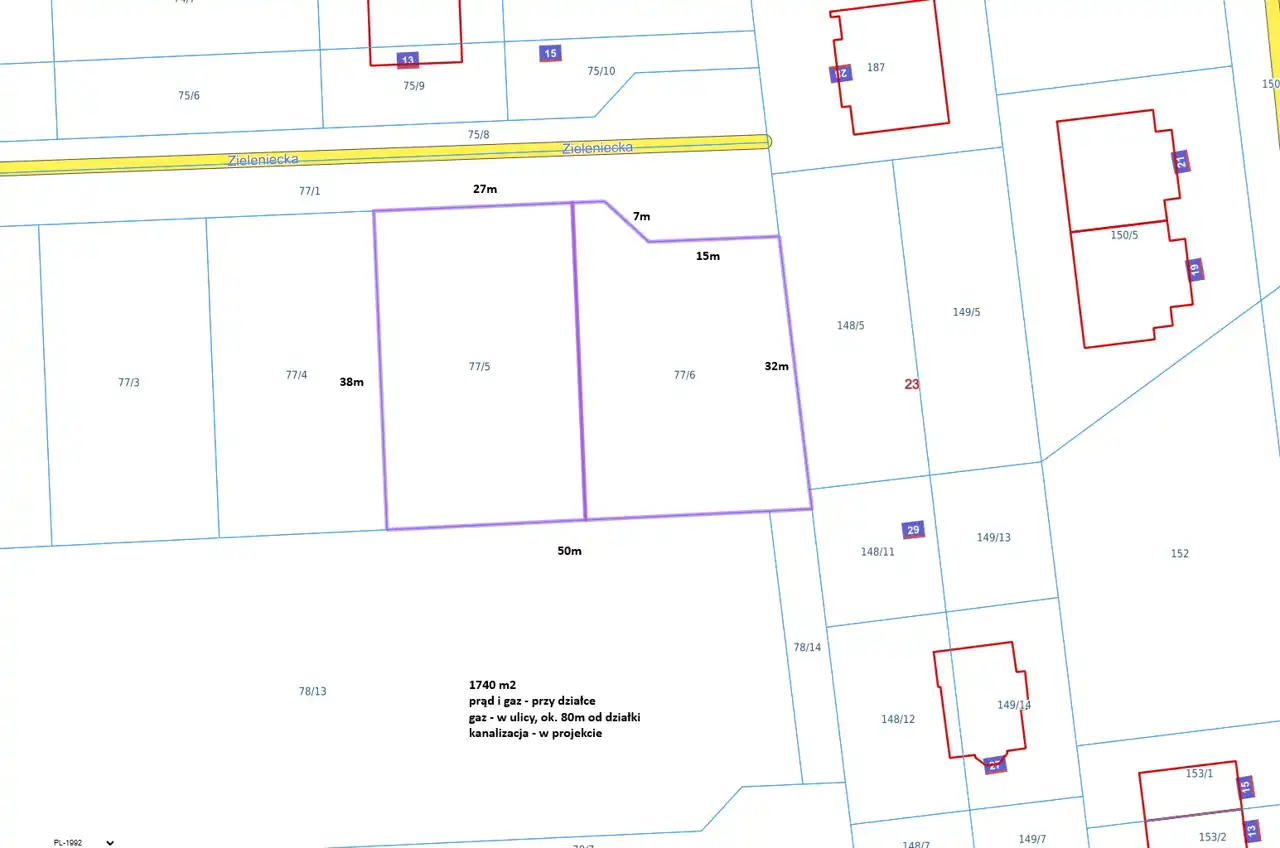 - Media Woda: w ulicy; Kanalizacja: w trakcie prowadzenia; Prąd: w ulicy; Gaz: w ulicy