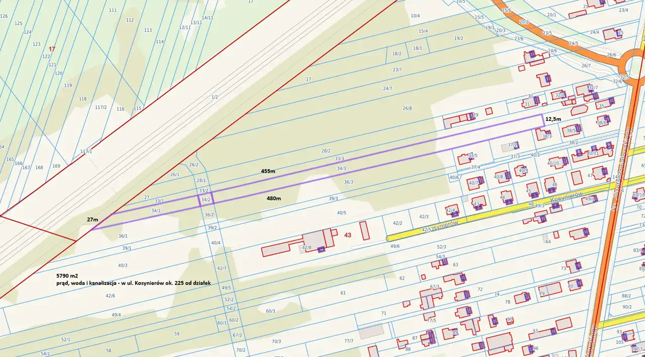 Prąd, woda i kanalizacja - w ul. Kosynierów około 225m od działek