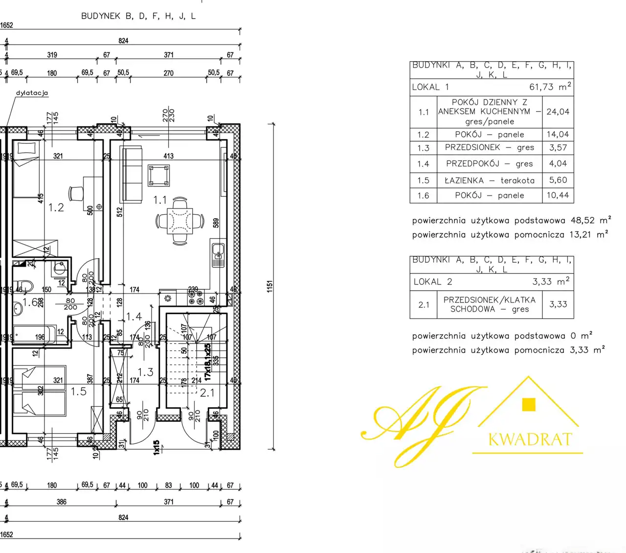 - Charakterystyka mieszkania 61.73 m2, 3 pokoje