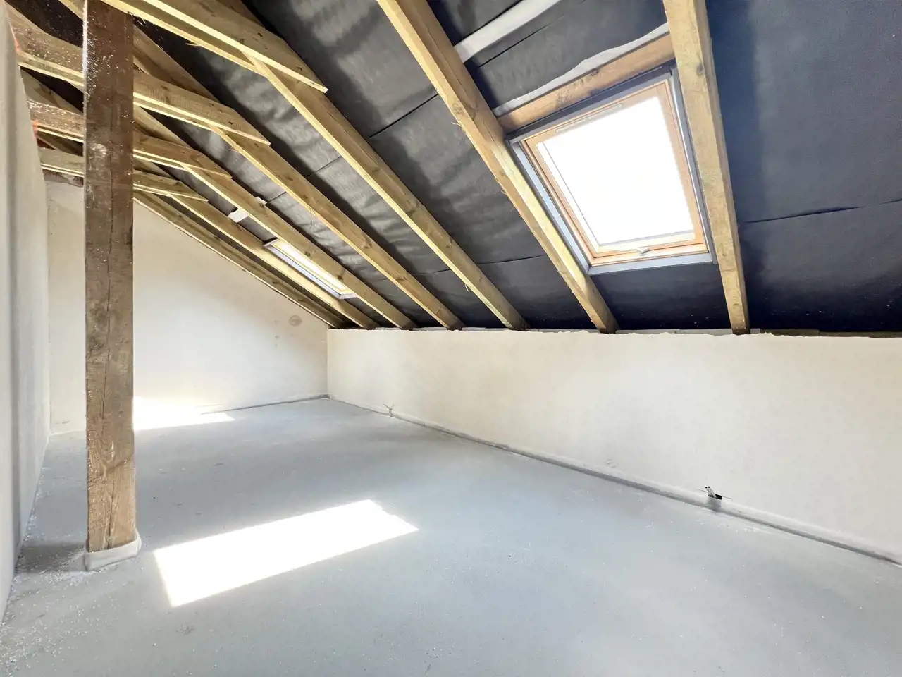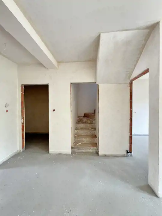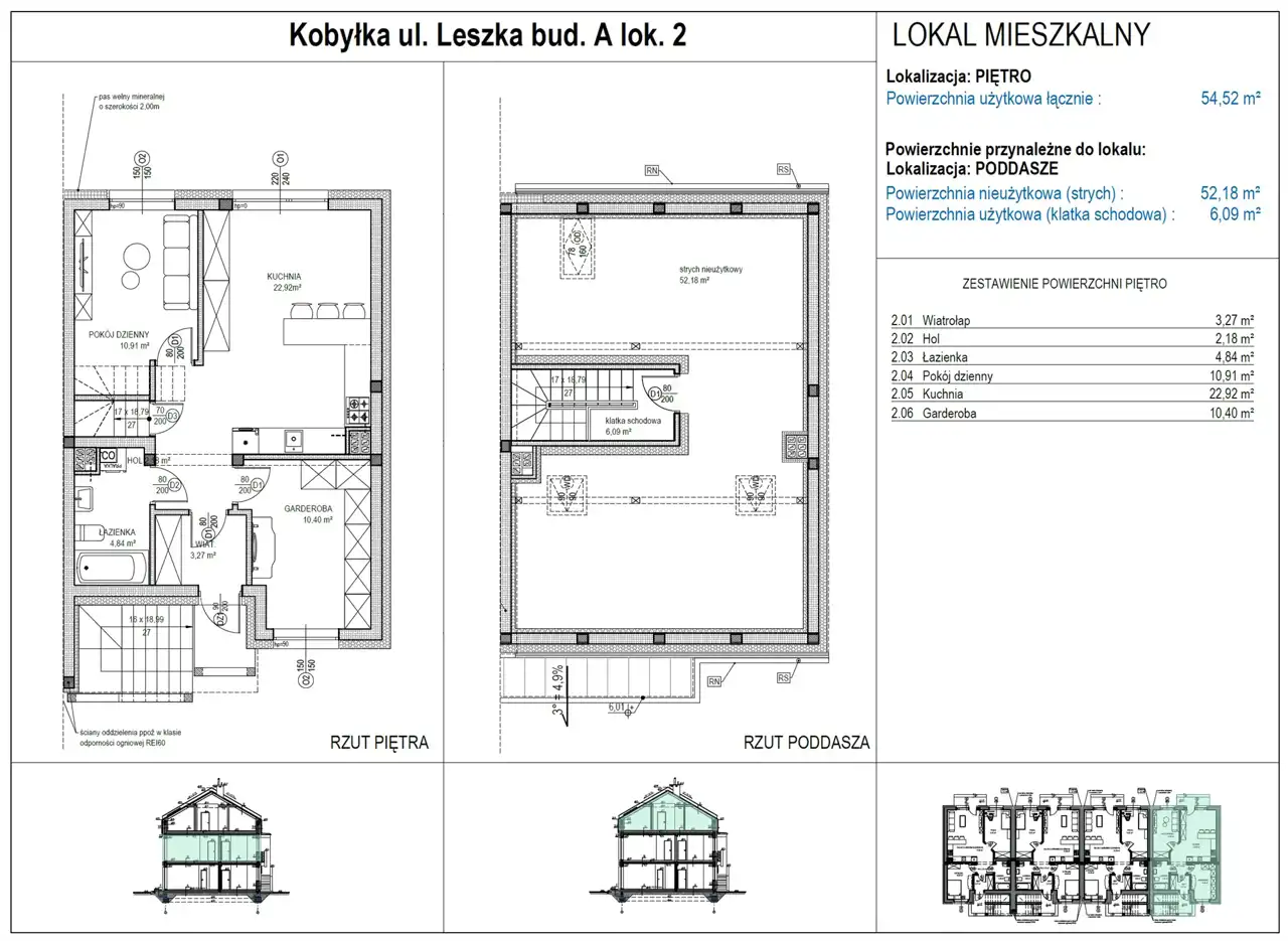 Opis Szczegółowy: Mieszkanie na piętrze o powierzchni całkowitej 106,90 m2, w tym: powierzchnia mieszkalna I poziomu 54,52 m2 + strych do własnej aranżacji 52,18 m2 m2, ogródek - ok. 40m2, 2 miejsca postojowe. Na parterze budynku funkcjonalny schowek pod schodami.