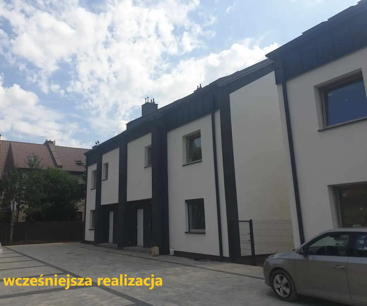 Mieszkanie w zabudowie jednorodzinnej z ogródkiem o powierzchni około 30 m2 i 2 miejscami postojowymi przed budynkiem na terenie wspólnym (zamkniętym). Na poddasze zostały wyprowadzone schody. Przestrzeń ta, to dodatkowe około 50 m2 do własnej aranżacji. Wyprowadzony pion kanalizacyjny zagwarantuje możliwość zrobienia tu np. dodatkowej łazienki. Dach będzie ocieplony wełną o grubości 15cm, będą założone 4 okna dachowe. W skład inwestycji wchodzą 24 mieszkania o zróżnicowanej wielkości i wielkości ogródków. Teren będzie ogrodzony i uporządkowany.