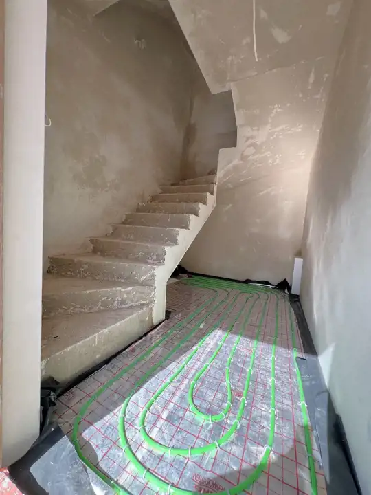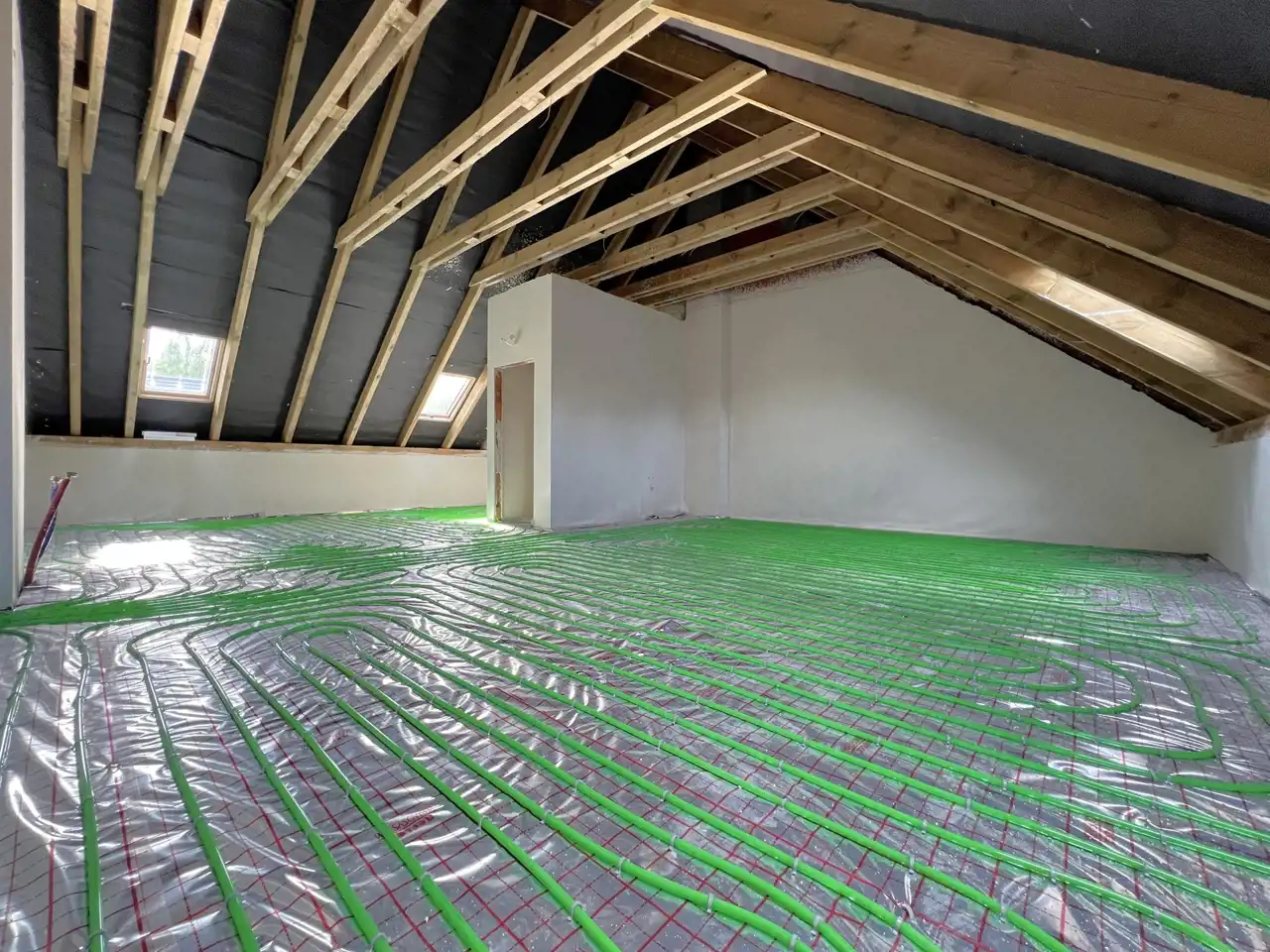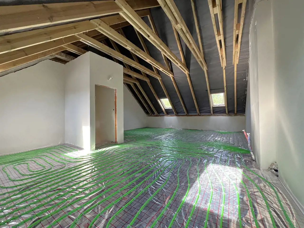 Na parterze wejście do budynku - zabudowana klatka schodowa z miejscem na schowek/szafę. Na piętrze duży widny hol, salon z aneksem kuchennym, dwie sypialnie, garderoba i łazienka. Z salonu wyjście na balkon. Na poddasze prowadzą z holu betonowe schody. Duże i wysokie poddasze z czterema oknami daje wiele możliwości aranżacji. Dach docieplony wełną 15 cm, wyprowadzone przyłącza do łazienki. Ogrzewanie podłogowe w całym lokalu, również na poddaszu.