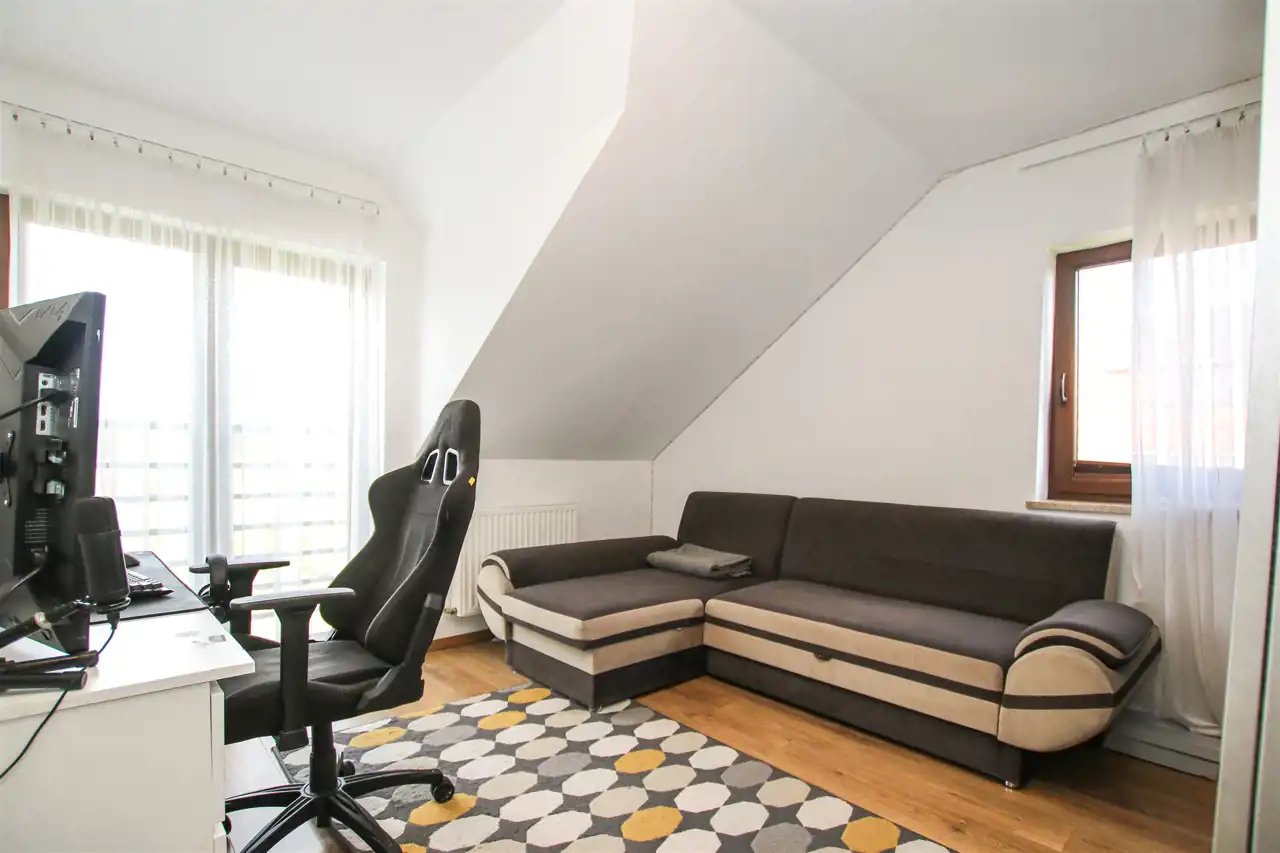 Prezentowany dom to propozycja dla osób poszukujących komfortowej, gotowej do wprowadzenia nieruchomości w otoczeniu zieleni, a jednocześnie blisko miasta. Funkcjonalny układ pomieszczeń sprawiają, że jest to oferta spełniająca oczekiwania nawet wymagających Klientów.