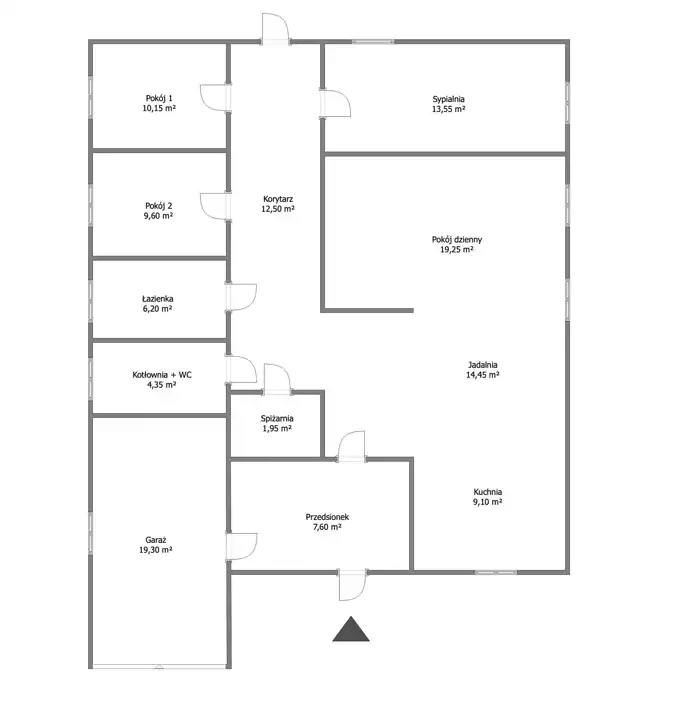 Parter domu to komfortowa strefa dzienna. Salon zachwyca swoją przestronnością. W salonie wygospodarowano miejsce na część jadalnianą – stół z krzesłami. Z salonem sąsiaduje kuchnia, w której idealne warunki do pracy umożliwia duża ilość blatów roboczych oraz wysokiej klasy sprzęt kuchenny AGD. Na parterze oprócz wygodnej strefy dziennej zaprojektowano również wiatrołap, WC z kotłownią, garaż jednostanowiskowy (19,30m2), łazienka z WC oraz sypialnia i 2 pokoje.
