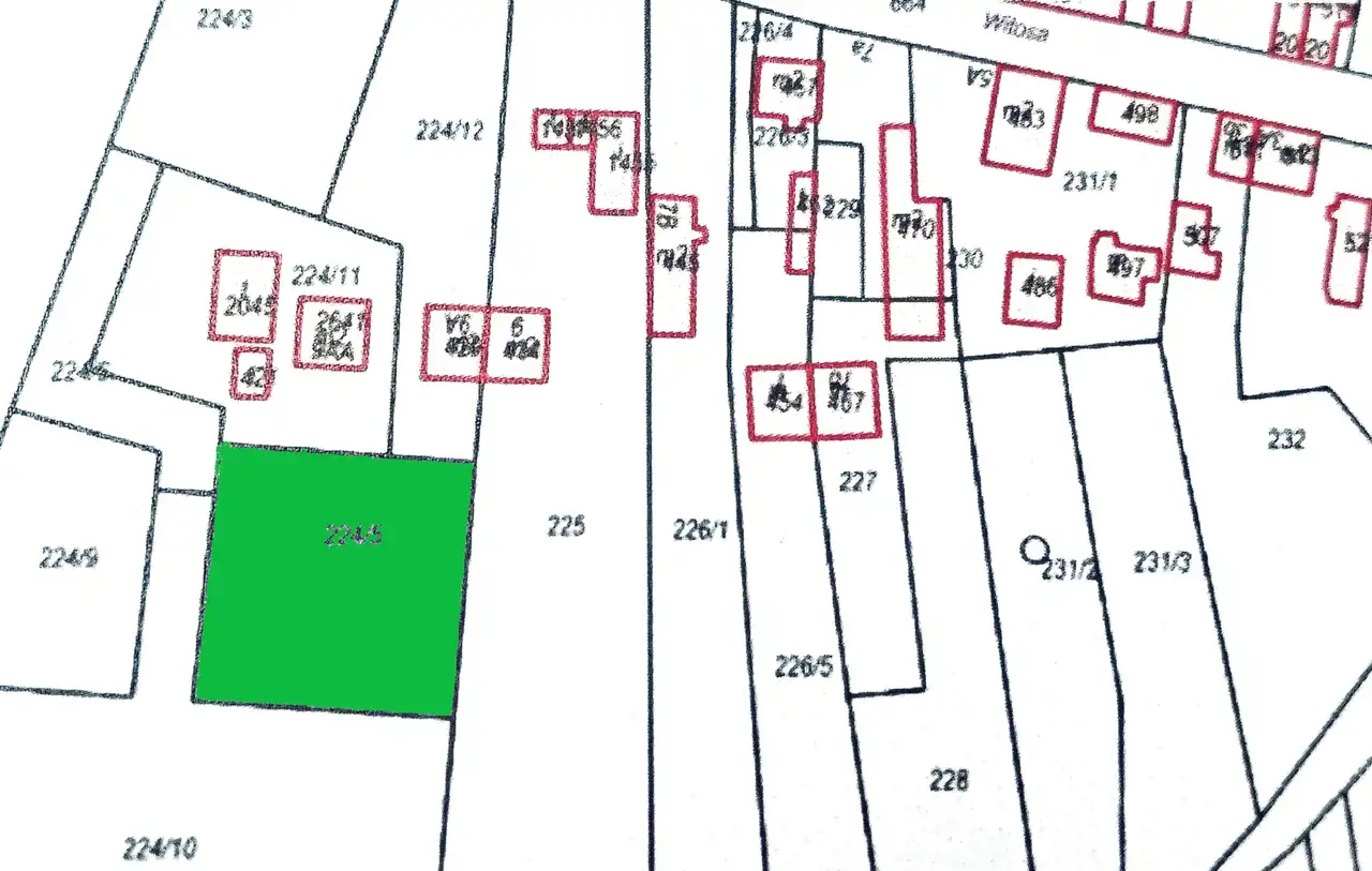 Przedmiotem sprzedaży jest prawo własności wydzielonej geodezyjnie działki, kształtem zbliżonej do prostokąta o powierzchni 1234 m2.