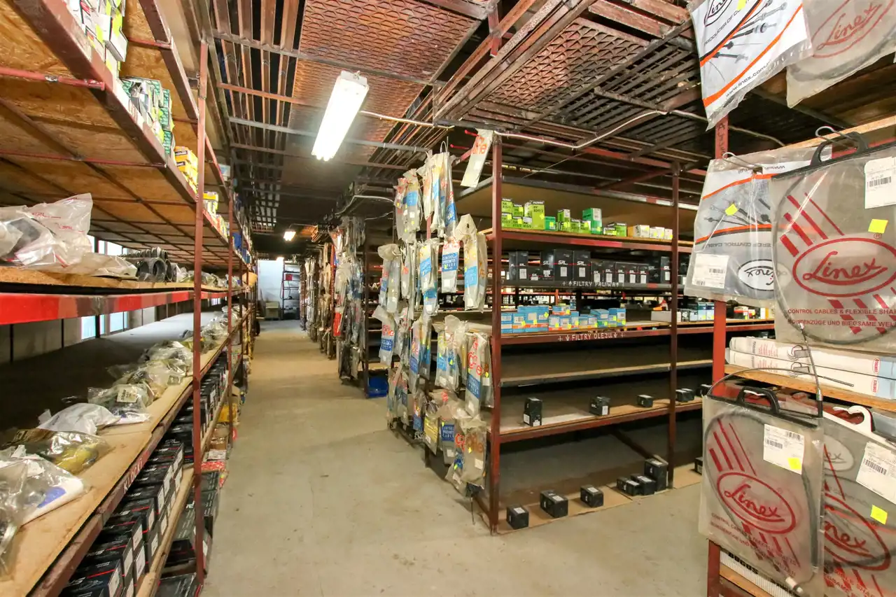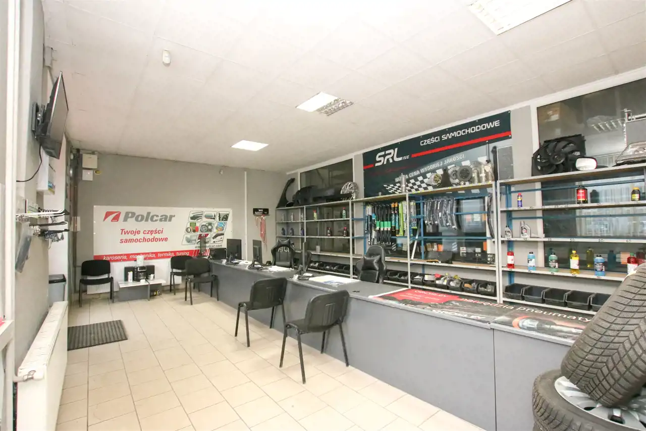 Obiekt składa się z przestronnego magazynu o powierzchni 500 m² i piętra o powierzchni również 500 m², idealnego do przechowywania szerokiego asortymentu części i akcesoriów samochodowych, oraz funkcjonalnej sali sprzedażowej z zapleczem o łącznej powierzchni około 100 m². Układ pomieszczeń zapewnia wygodną obsługę klientów i sprawną organizację pracy.