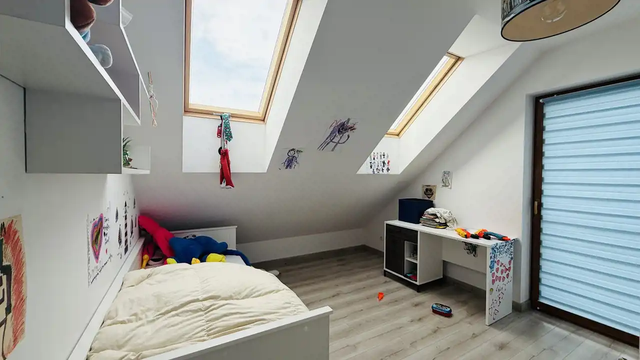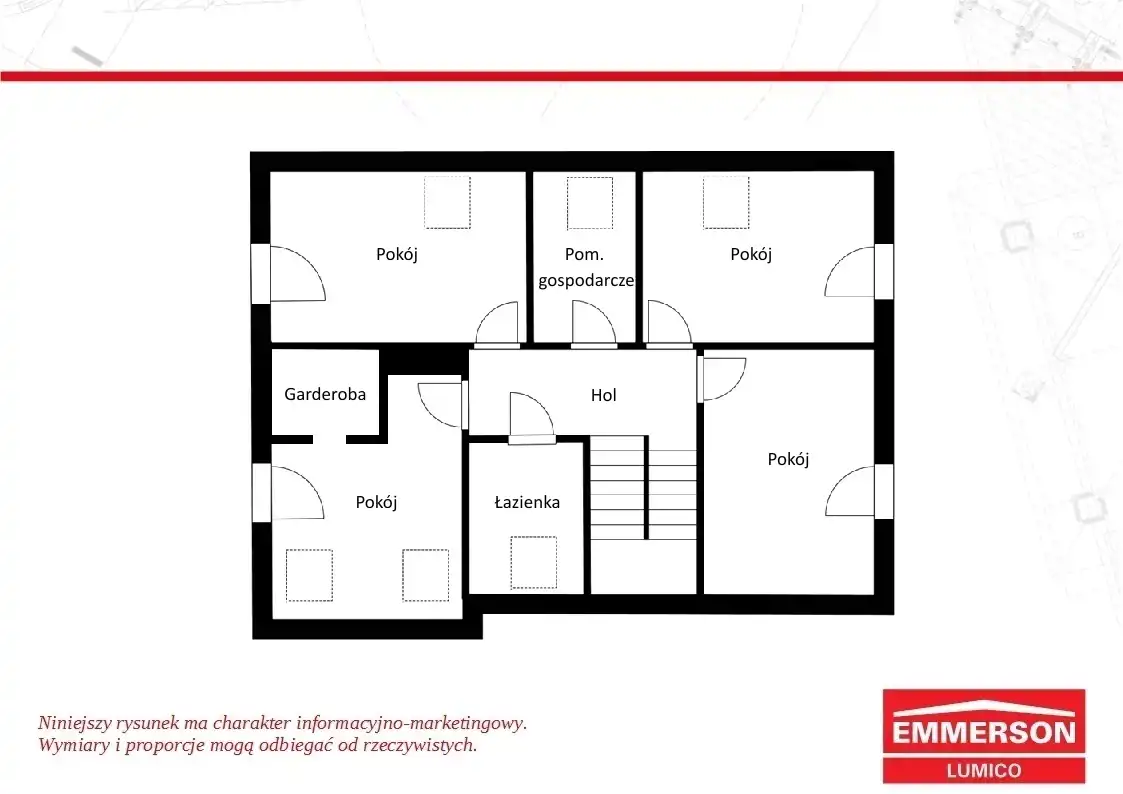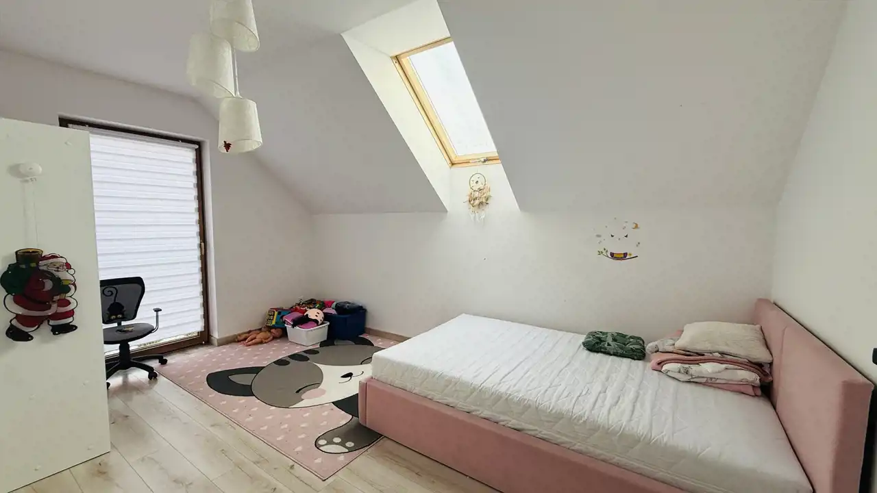 Poddasze stanowi komfortową strefę prywatną. Prowadzą na nie schody, które otwierają się na przestronny hol. Do dyspozycji są cztery ustawne pokoje (idealne jako sypialnie, pokoje dziecięce lub gabinet), osobna pralnia, garderoba oraz łazienka, zapewniająca wygodę wszystkim domownikom.
