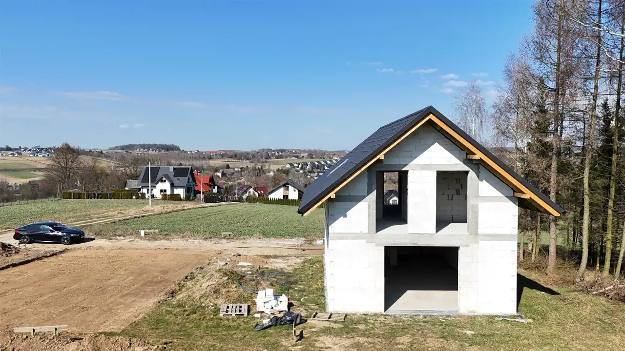 Dom w stanie surowym zamkniętym na widokowej działce.