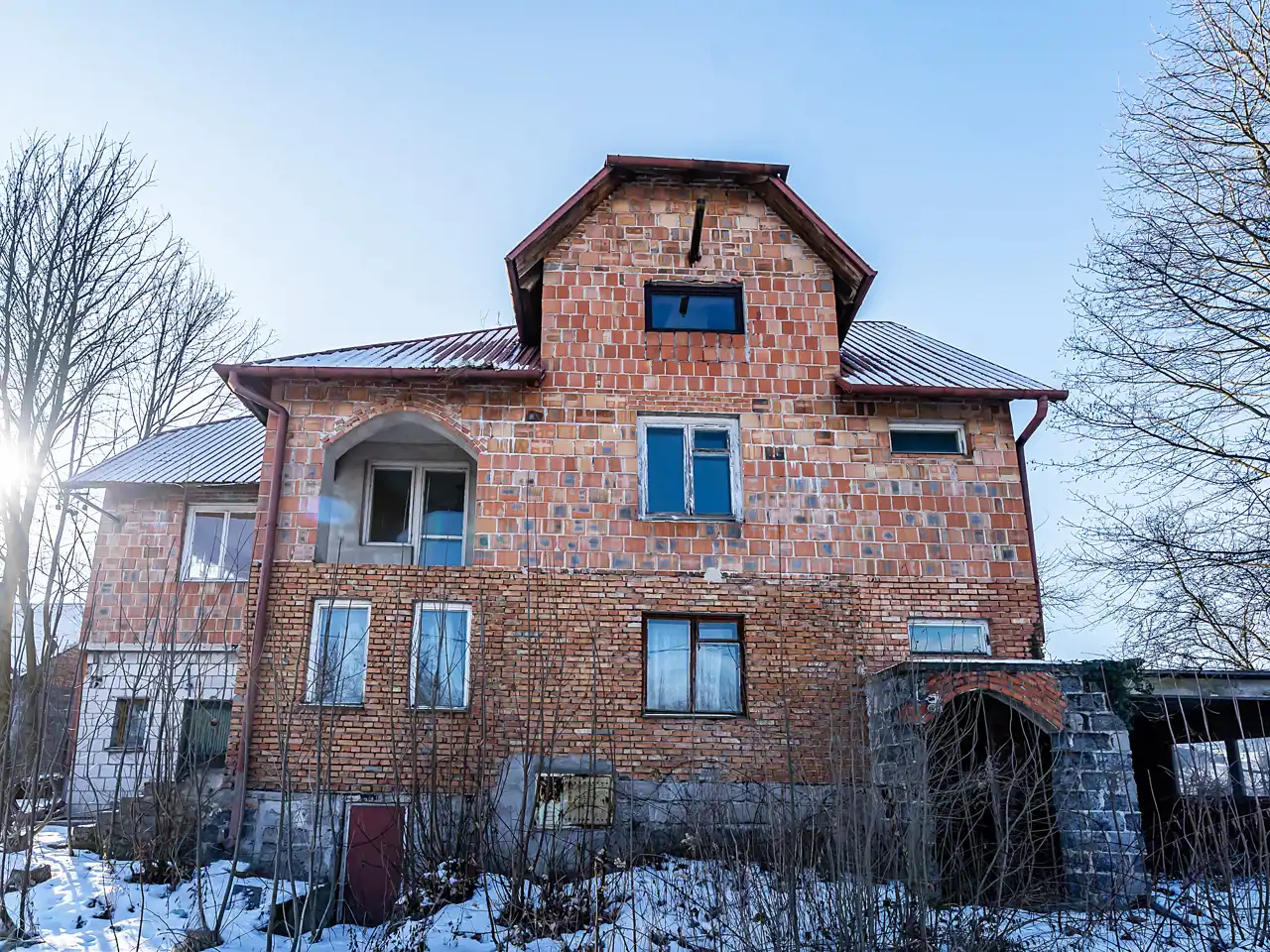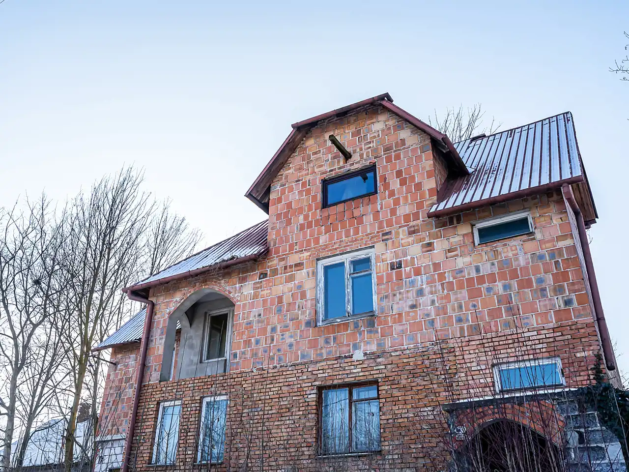 Dom wybudowany z cegły oraz pustaka.