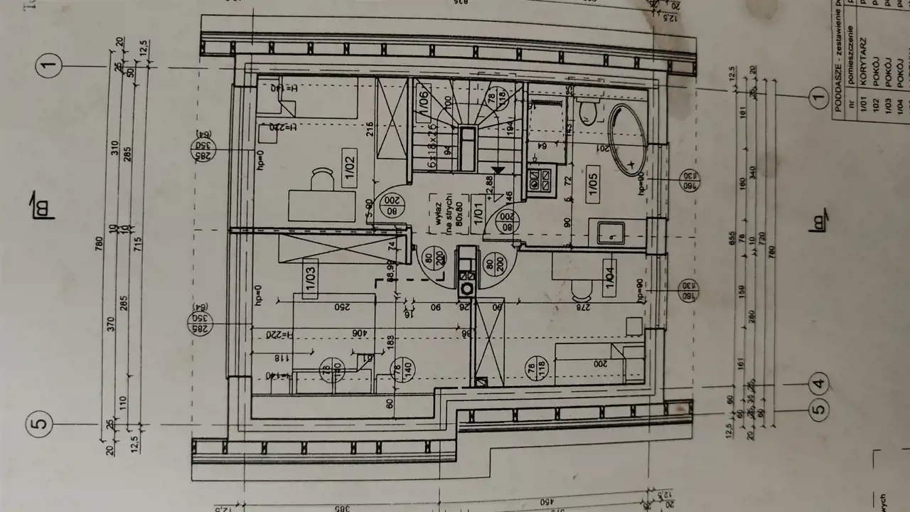 - Piętro: 3 sypialnie, korytarz, rodzinna łazienka,