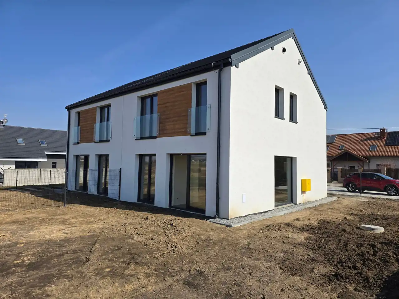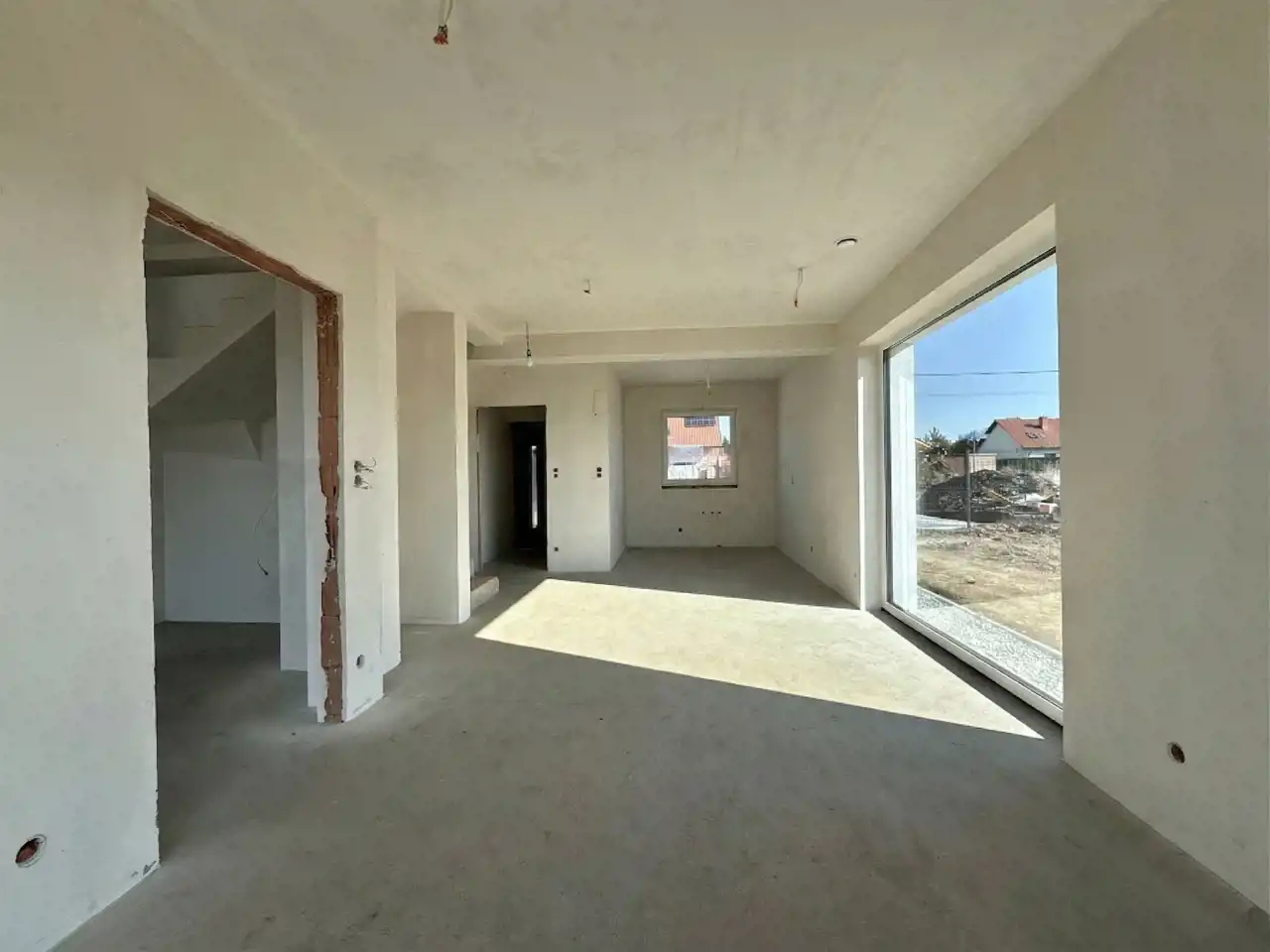 Dom usytuowany jest na działce o powierzchni 500 m², co gwarantuje dużą przestrzeń do aranżacji ogrodu, tarasu czy strefy relaksu. Przed budynkiem znajdują się dwa wygodne miejsca postojowe.Nieruchomość sprzedawana jest w stanie deweloperskim, z pozwoleniem na użytkowanie, co umożliwia szybkie wykończenie wnętrza według własnych potrzeb i gustu. Planowany termin przeniesienia własności przypada na I–II kwartał 2026 roku.