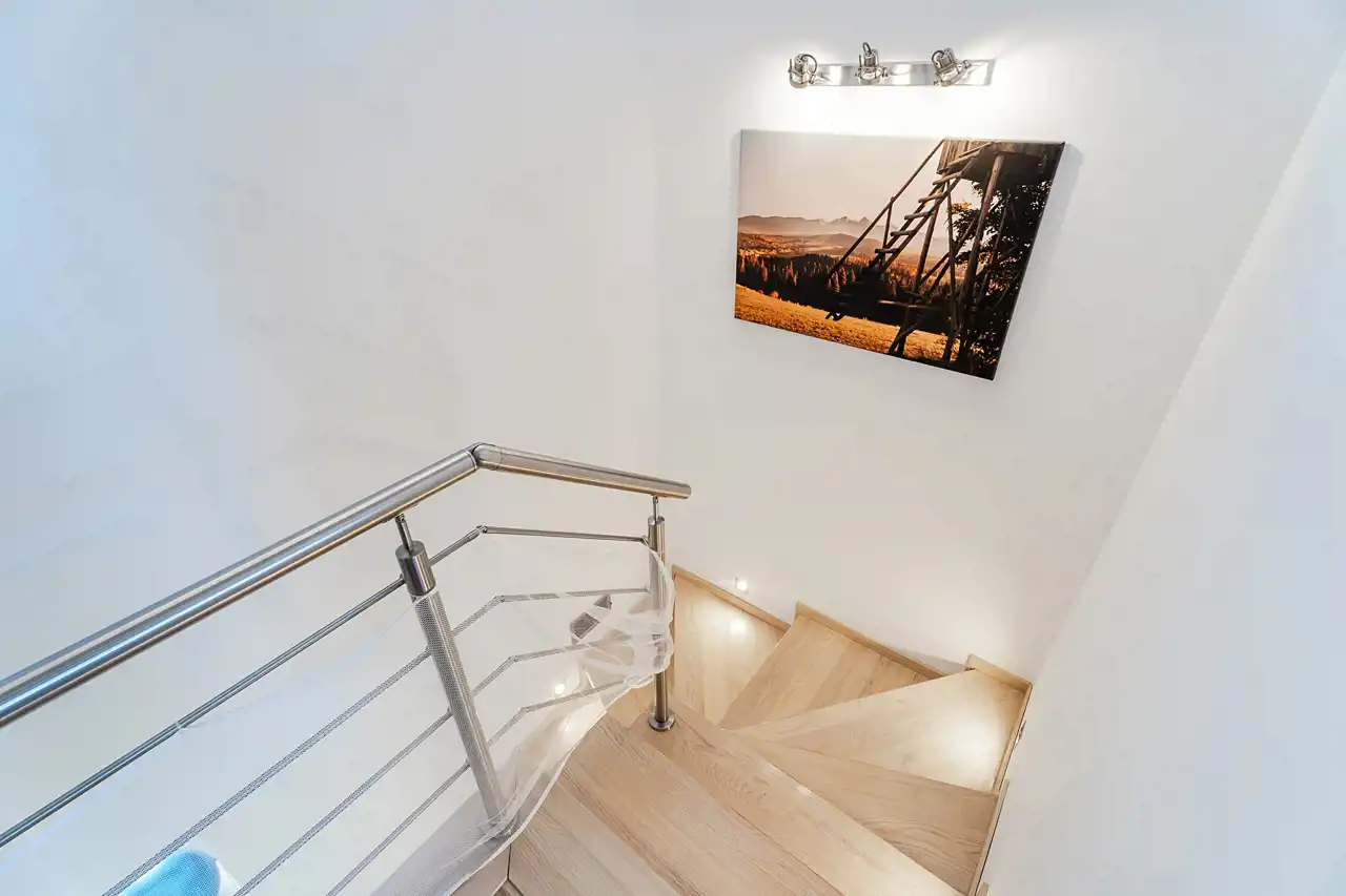 ✔ Kominek z rozprowadzeniem ciepła na piętro – ogrzewa praktycznie cały dom