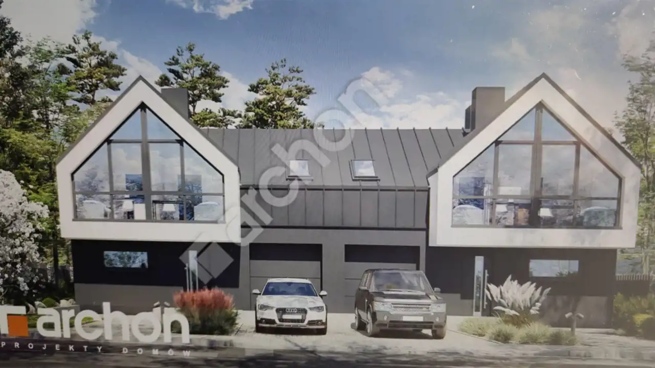 Budynek z dużymi oknami - prezentuje się nowocześnie, wykończenie zewnętrzne odpowiada aktualnym trendom architektonicznym. Uwagę zwracają duże przeszklenia, które wspaniale otwierają wnętrze na widok zewnętrzny, wprowadzając dużą ilość naturalnego światła. W każdym segmencie przewidziano jednostanowiskowy garaż i miejsca postojowe, wejście główne zyskało praktyczne zadaszenie, poprzez wysunięty nad nim ryzalit. W strefie dziennej na parterze przewidziano wygodną przestrzeń wypoczynkową, salon łączy się z jadalnią oraz aneksem kuchennym, którego granicę wyznacza długi półwysep. Dzięki odpowiedniej organizacji powierzchni mamy tutaj dodatkowe miejsce do spożywania posiłków, a także podręczną spiżarnię. W optymalny sposób zagospodarowano przestrzeń holu, gdzie można zamontować wiele pojemnych szaf, które pomieszczą ubrania i domowe sprzęty. Na parterze nowi mieszkańcy dysponują także toaletą, a z wiatrołapu mają dostęp dodużej kotłowni z funkcją pralni lub łazienki z wc oraz jednostanowiskowego garażu. Garaż posiada bezpośrednie wyjście do ogrodu, co ułatwi wyjazd kosiarki. Na poddaszu przestronności dodaje wysoka ścianka kolankowa i w pełni przeszklone ściany szczytowe. W strefie nocnej zaprojektowano sypialnię rodziców z prywatną łazienką lub garderobą, dwa pokoje dzieci, ogólnodostępną łazienkę, z miejscem na wannę, prysznic, a także zestawem umywalek. Czwarty pokój na poddaszu może pełnić funkcję wspólnej strefy rekreacyjnej lub gabinetu z atrakcyjnym widokiem na ogród.