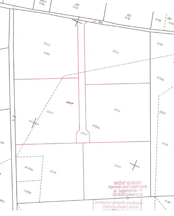 Nieruchomości o powierzchni od 30 do 37 ar są objęte miejscowym planem zagospodarowania przestrzennego Gminy Kocmyrzów‑Luborzyca symbolem R1
