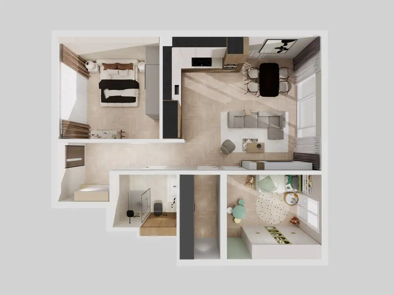 - Charakterystyka mieszkania 60 m2, 3 pokoje