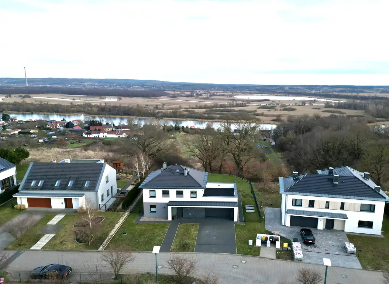Dom z 2017r. wybudowany o powierzchni użytkowej 234m2 + dwa duże tarasy na piętrze (możliwość rozbudowy lub zamontowania ogrodu zimowego), działka o powierzchni 1059m2 ( płaska - wyrówna, wykonany mur oporowy). Nieruchomość położona w najlepszej części osiedla z bezpośrednim widokiem na Odrę - pierwsza linia.
