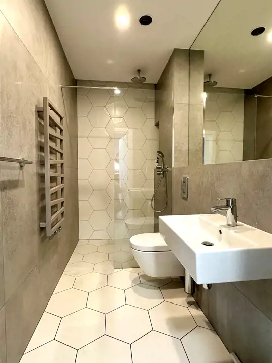 - kuchnia w nowoczesnej zabudowie ze sprzętem AGD (przy kuchni spiżarnia), połączonej z jadalnią