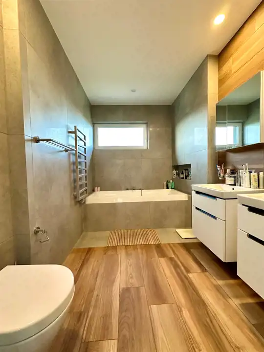 Nieruchomość wykończona w podwyższonym standardzie. Drewniane podłogi, zainstalowany system rekuperacji. Ogrzewanie z pieca gazowe kondensacyjnego z zasobnikiem ( ogrzewanie podłogowe na parterze i łazienkach, sypialnie - grzejniki). Dom wybudowany metodą tradycyjną murowaną + 20cm styropian grafitowy, elewacja wykonana metodą STO.