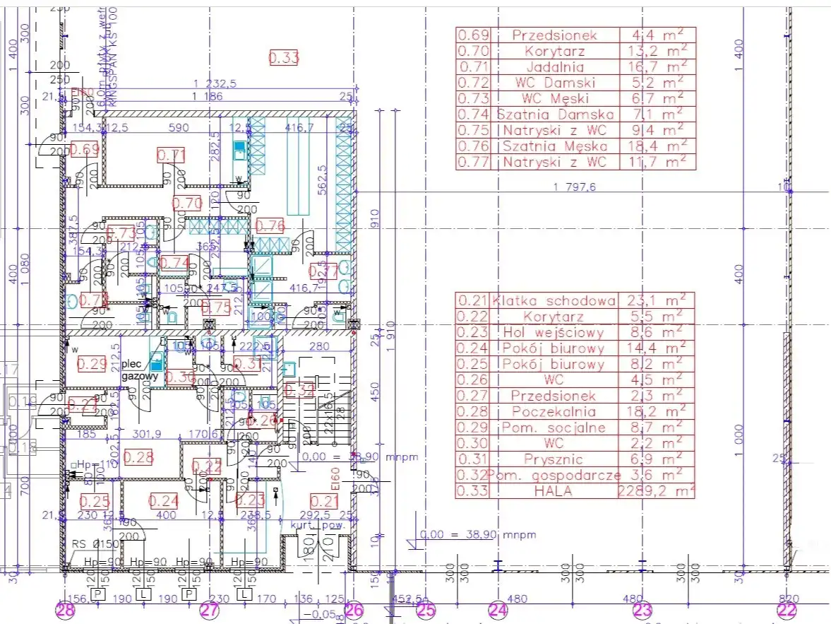 -powierzchni biurowo - socjalnej 35 zł/m2,