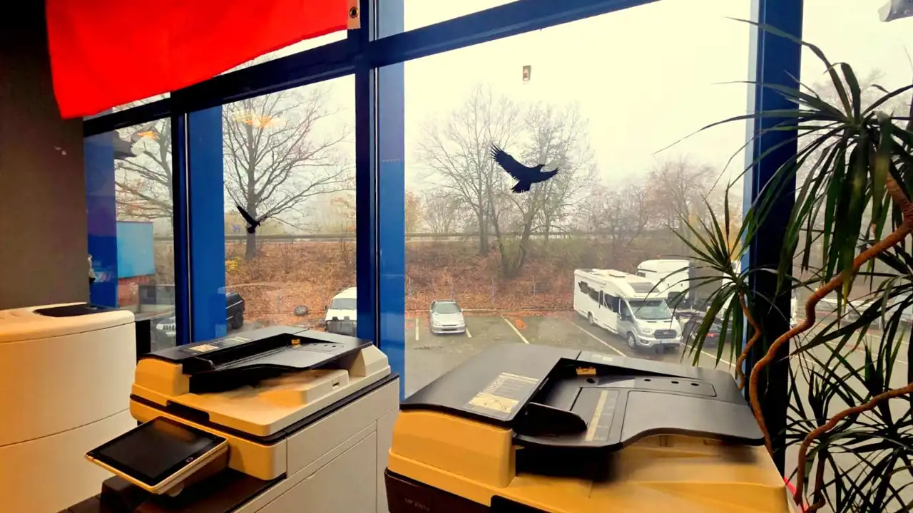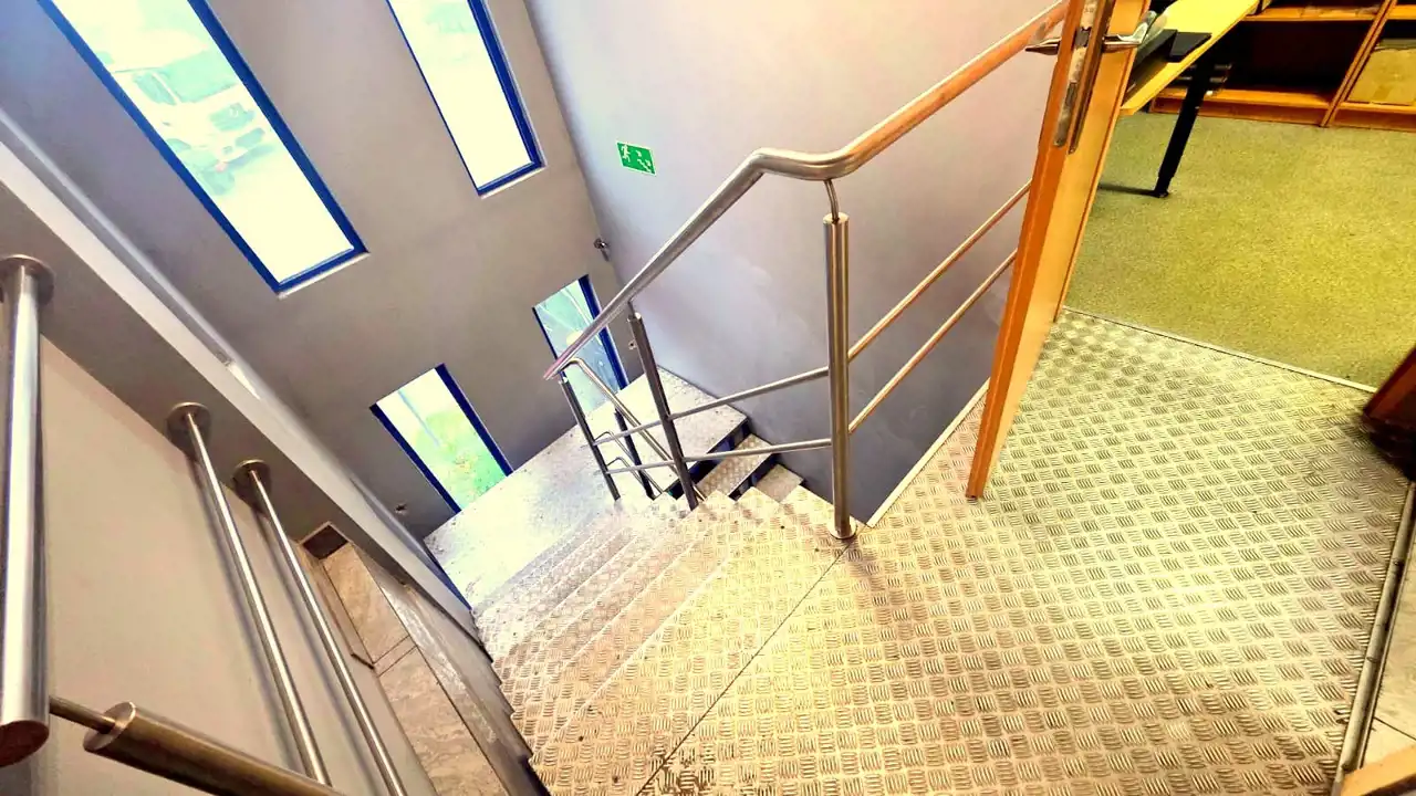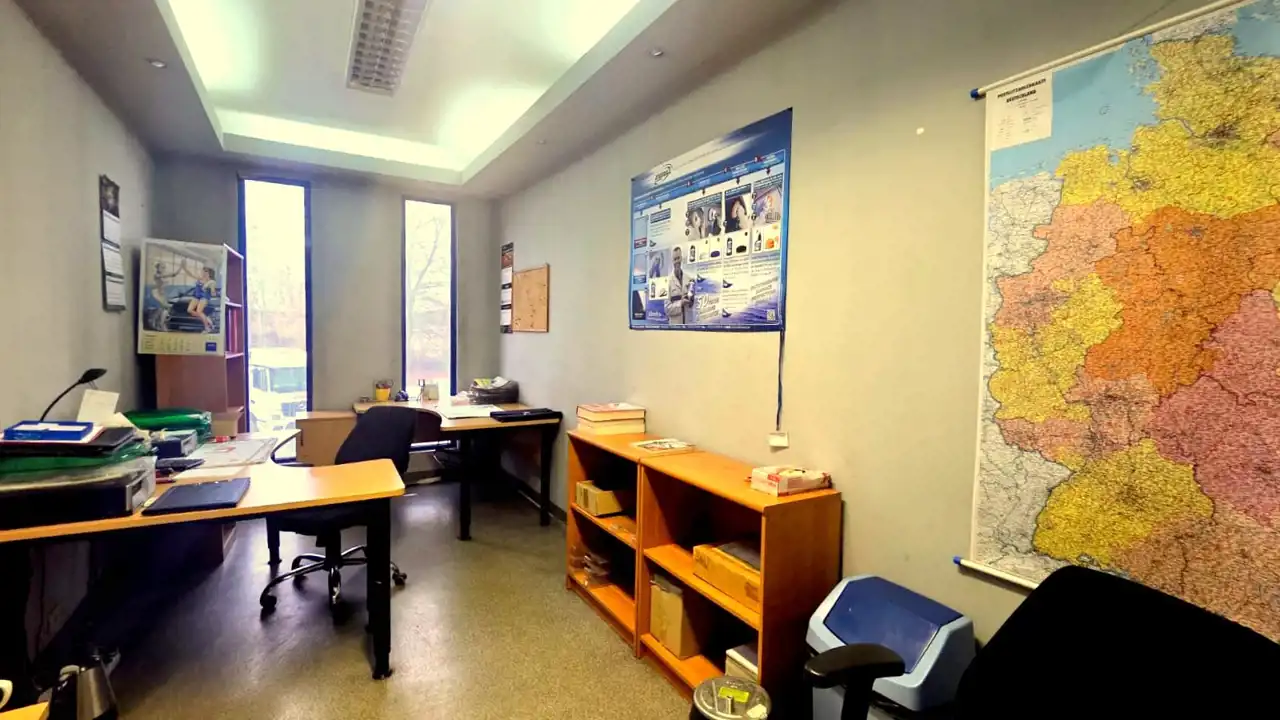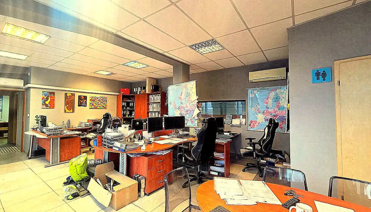 • Główne biuro z dużym przeszkleniem i widokiem na plac manewrowy