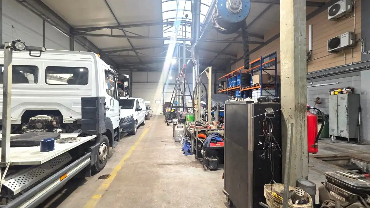 • Hala warsztatowa z kanałami, pełnym zapleczem technicznym oraz wejściem na piętro