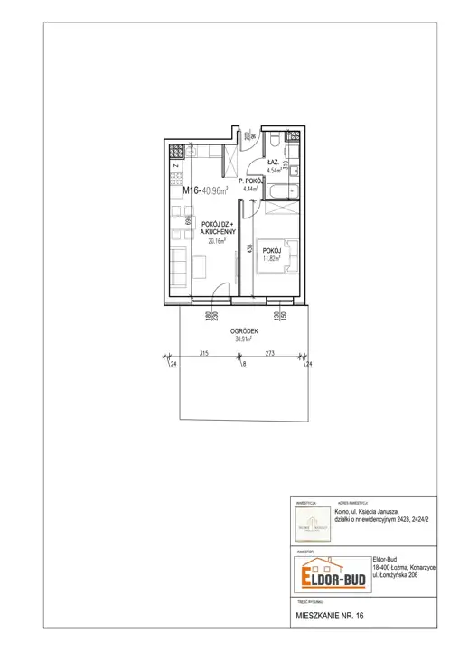 - 2-pokojowe mieszkanie numer 16 na poziomie 0 w budynku w Inwestycji "Nowe Kolno" od Dewelopera ELDOR-BUD Sp. z o.o.