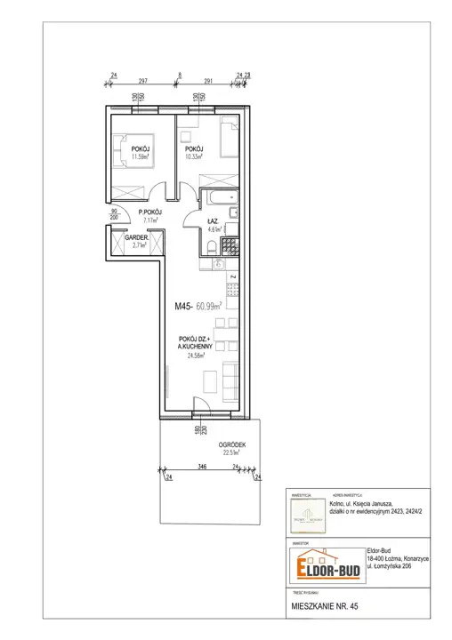 - 3-pokojowe mieszkanie numer 45 na poziomie 0 w budynku w Inwestycji "Nowe Kolno" od Dewelopera ELDOR-BUD Sp. z o.o.