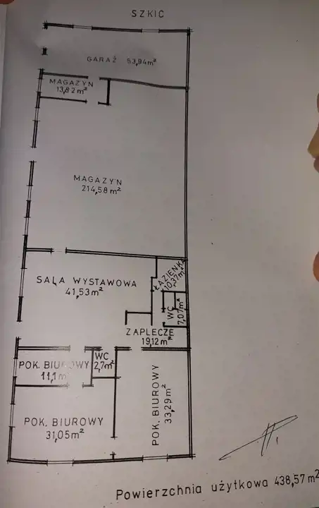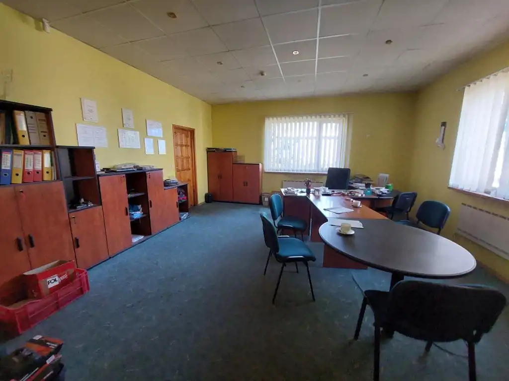 Budynek wolnostojący, jednokodygnacyjny bez poddasza i podpiwniczenia wykonany w technologii tradycyjnej o pow. użytkowej: 438 mkw. (pow.: magazynowa: 282 mkw., pow. biurowo - socjalna: 156 mkw.) wybudowany w roku 2000 w DOBRYM STANIE TECHNICZNYM. Wysokość w świetle pomieszczeń: 3 m. KONSTRUKCJA: pustaki ceramiczne; DACH: jednospadowy, stalowy pokryty blachą; DRZWI WEW.: drewniane, DRZWI ZEW.: profile PCV, BRAMA WJAZDOWA DO MAGAZYNU: w konstrukcji stalowej, ŚCIANY: tynki cementowo - wapienne pomalowane farbą lub płytki, SUFITY: podwieszane, POSADZKI: wykładziny dywanowe, terakota. INSTALACJE: elektryczność, wod-kan z sieci miejskiej, teletechniczna i odgromowa, C.O.: lokalne elektryczne.