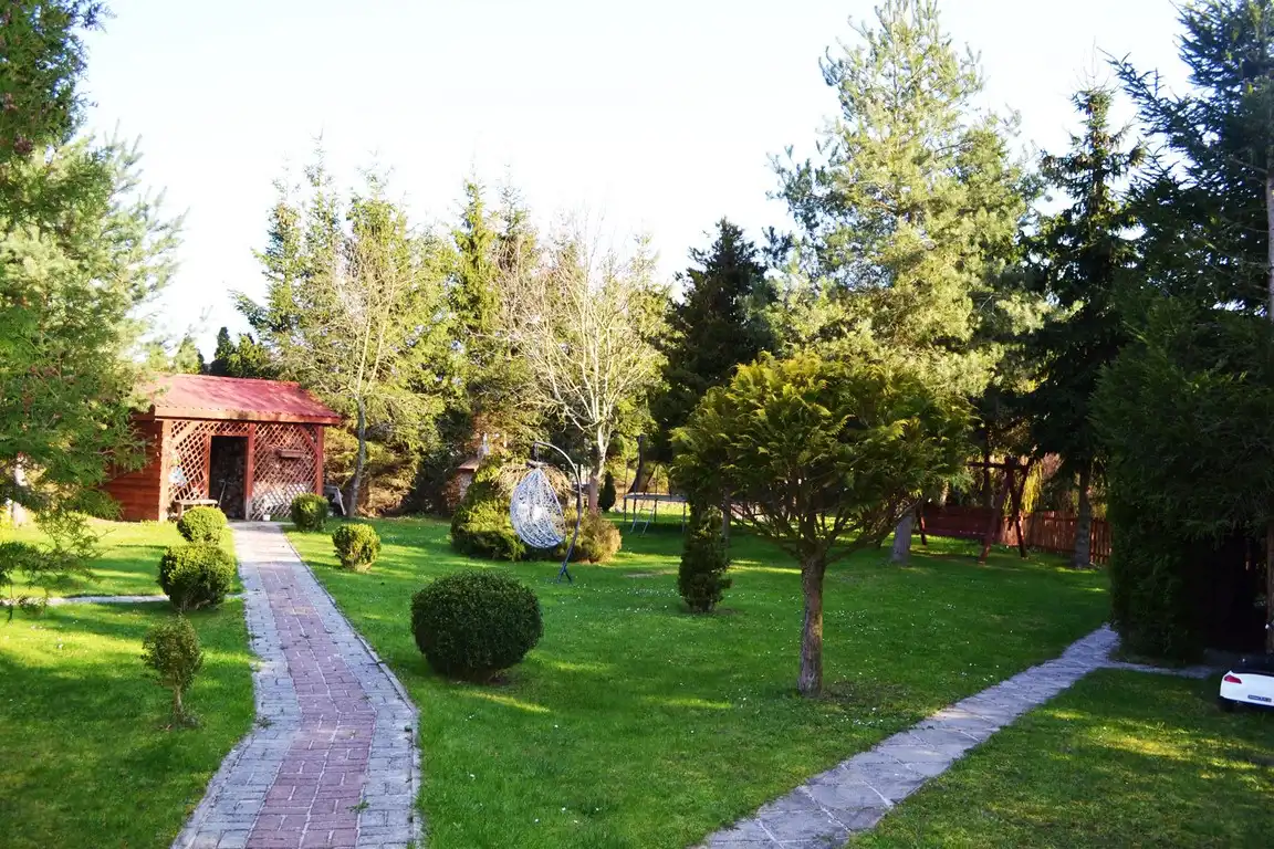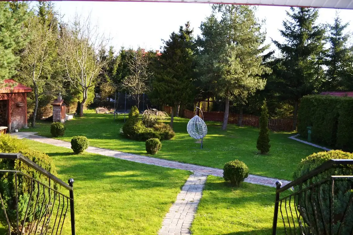 Działka zagospodarowana, liczne nasadzenia, sporo roślin, iglaków, ogrodzony stawek. Na działce drewutnia, domek grillowy, narzędziownia, wędzarnia.