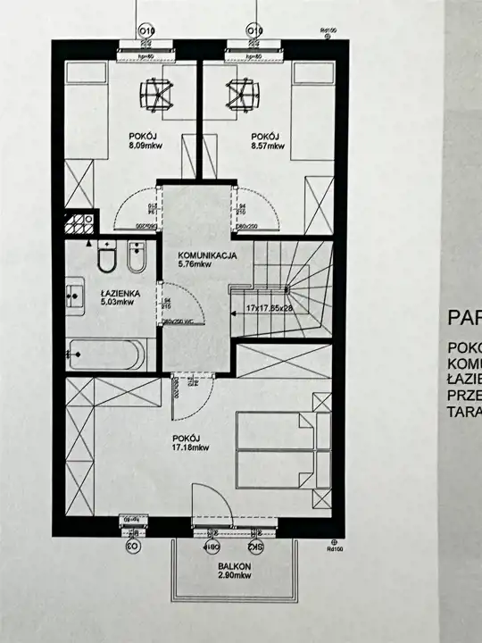- Media Ogrzewanie: centralne; Woda: ciepła - miejska; Kanalizacja: miejska; Prąd: jest; Gaz: jest