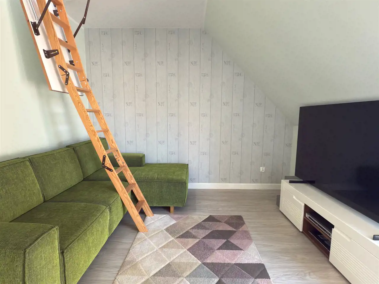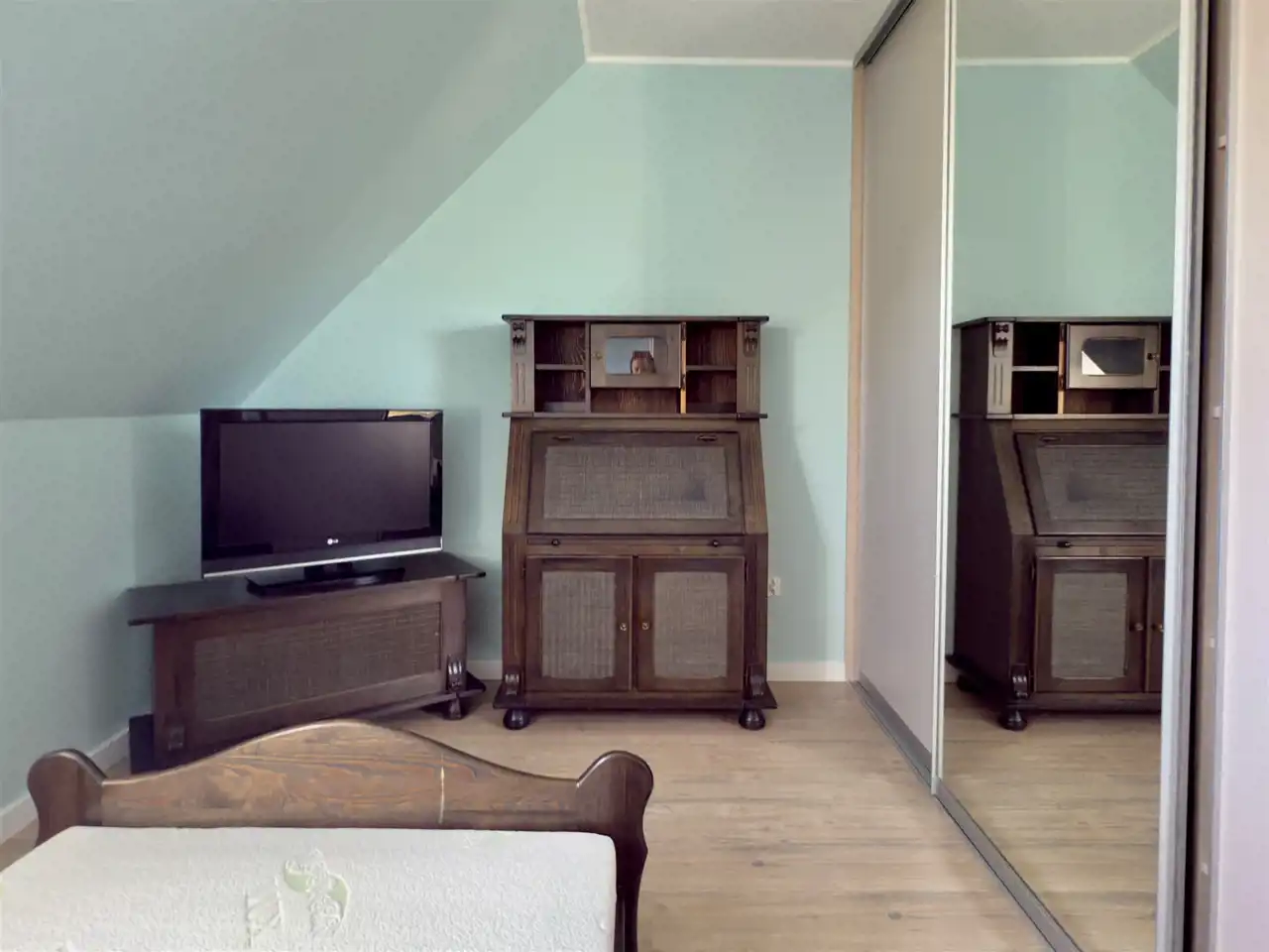 - drugi, analogiczny pokój z własnym wejściem na strych i balkon.