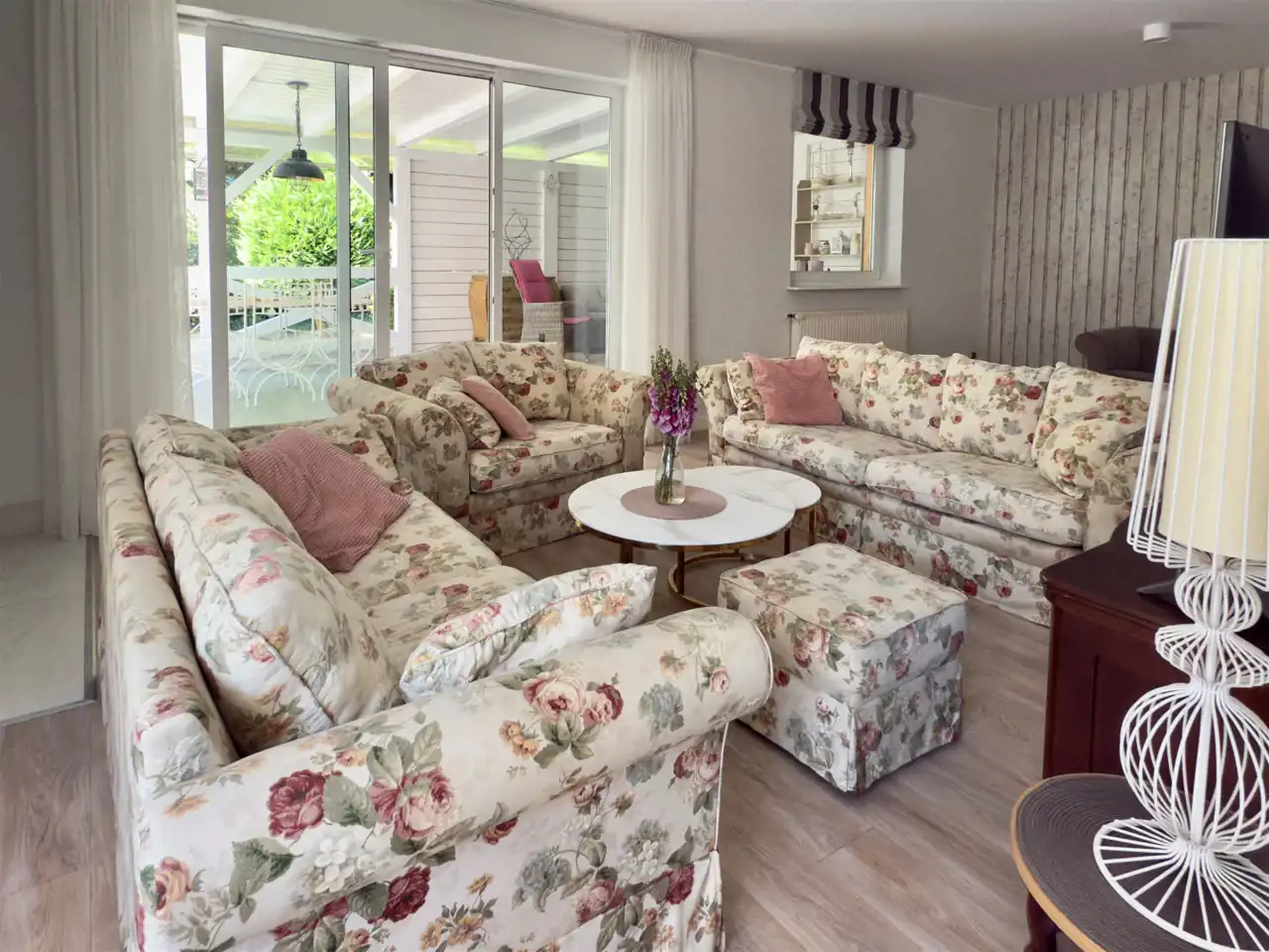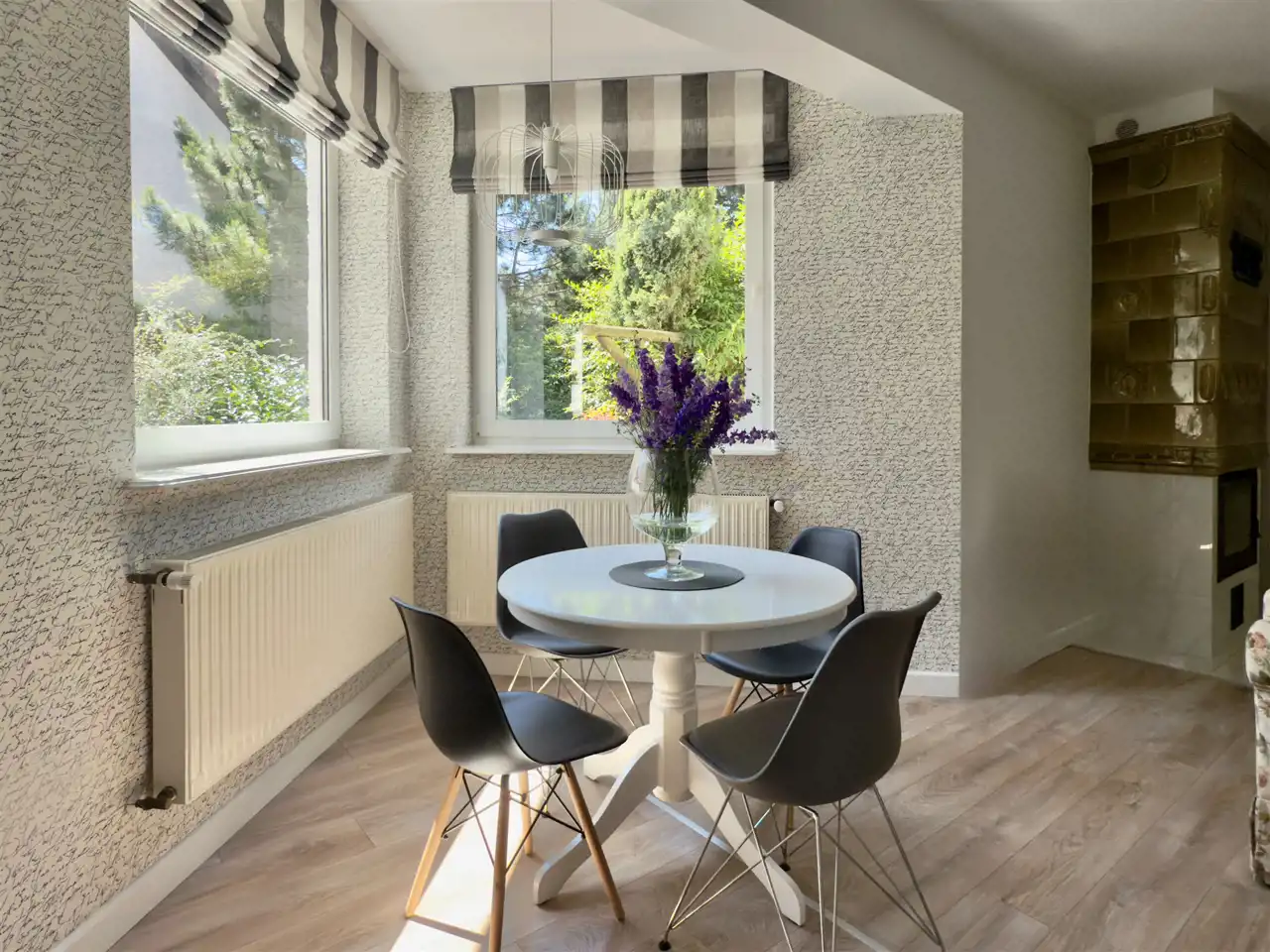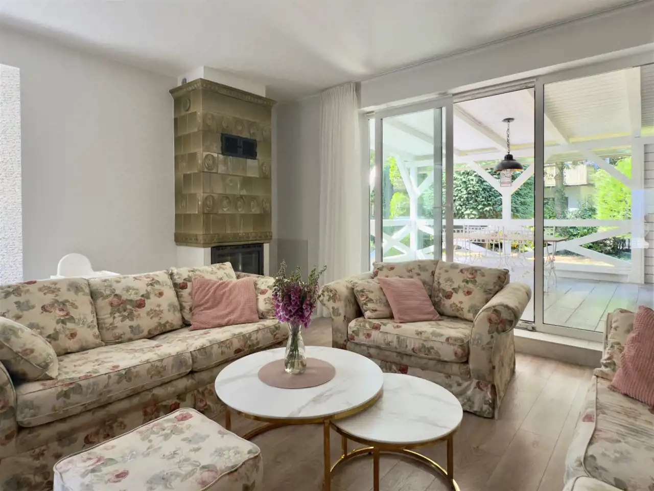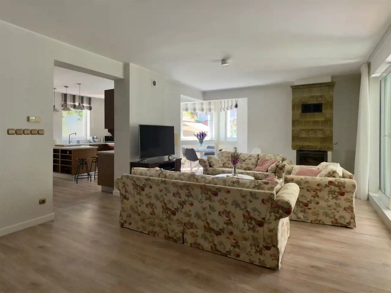 - przestronny salon z jadalnią, kominkiem i wyjściem na werandę.